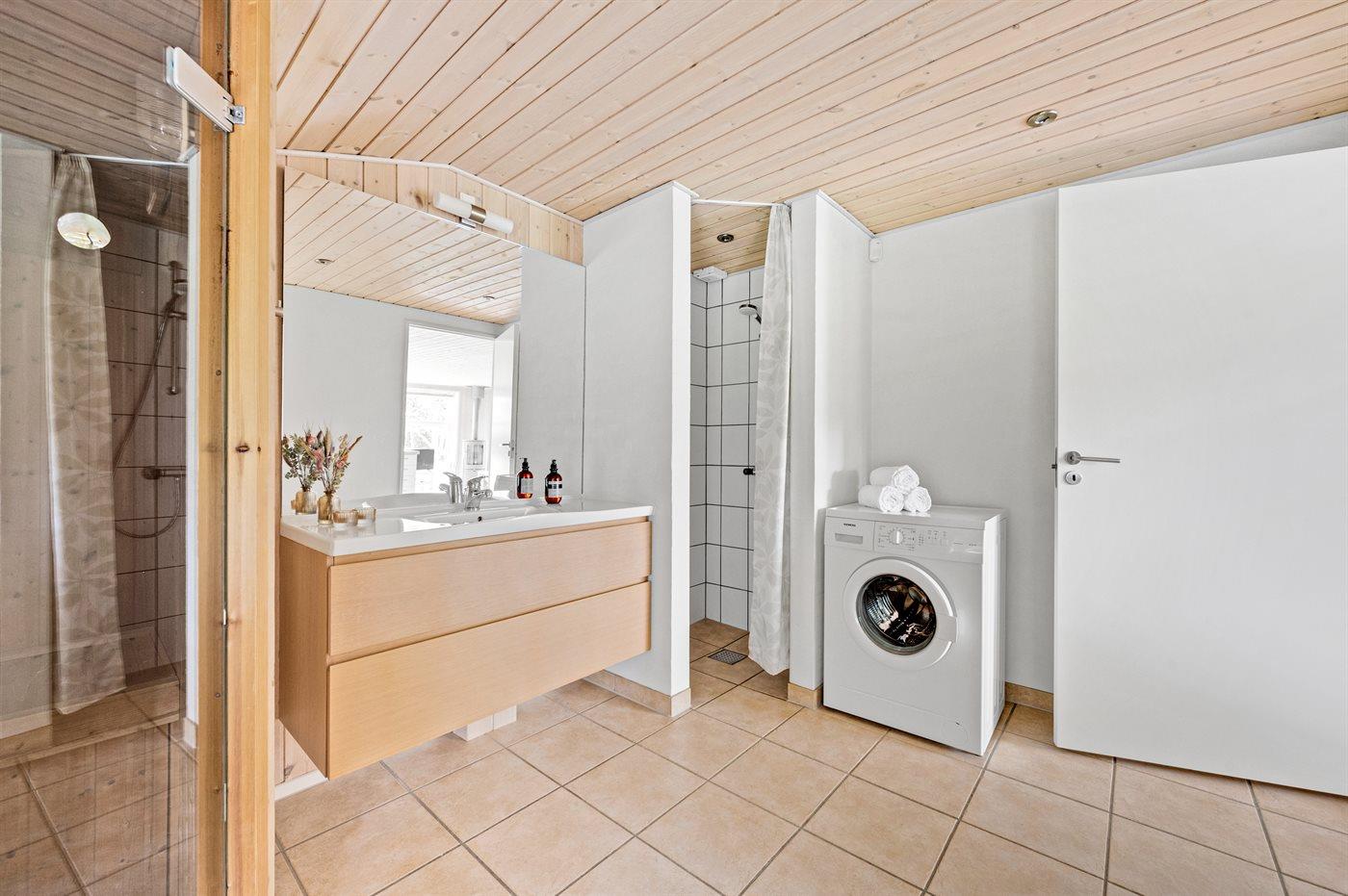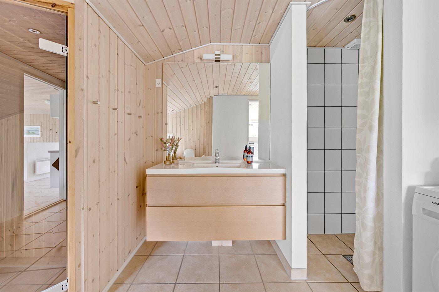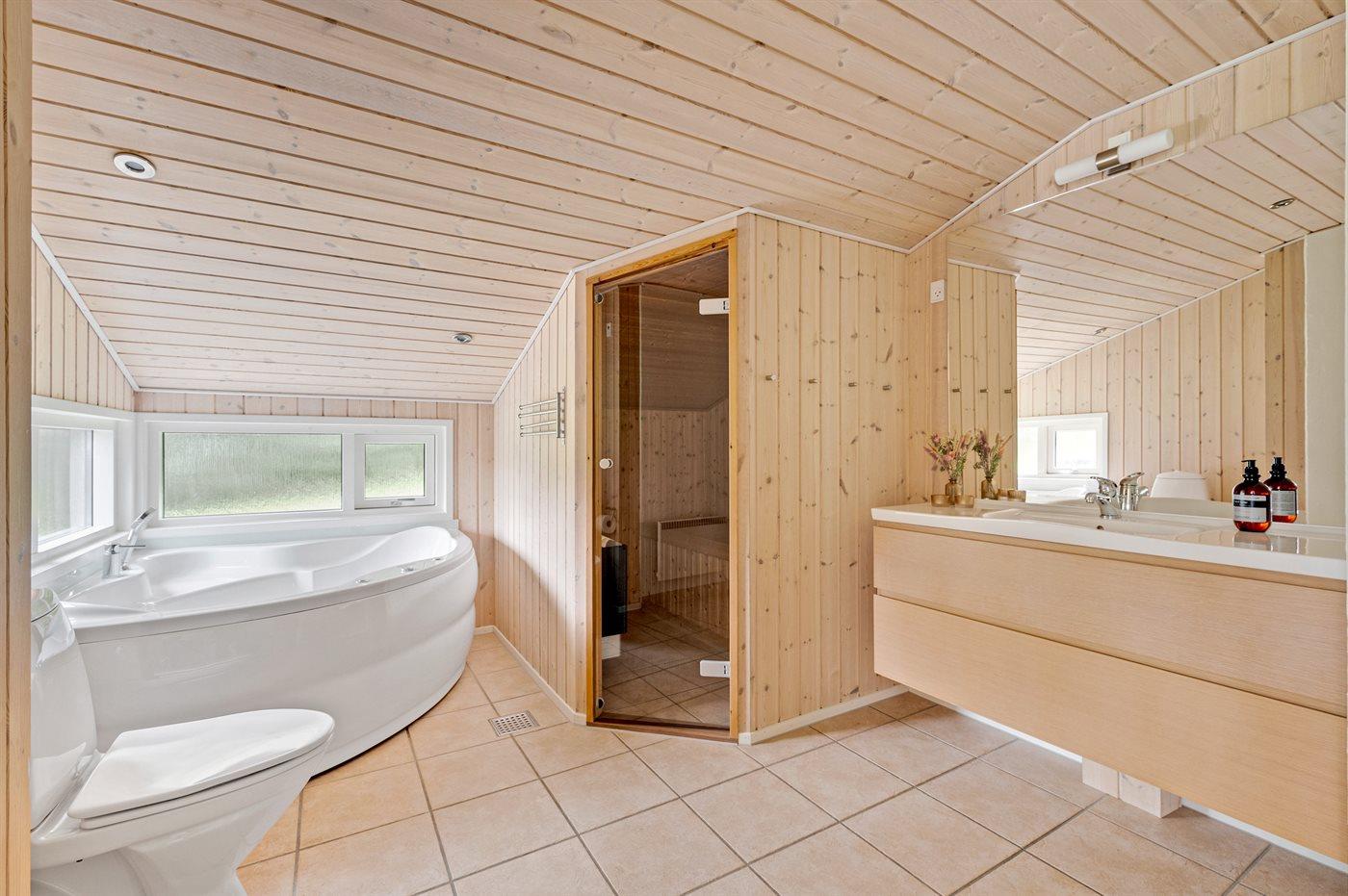 Der er 1 badeværelse med bruseniche og 1 toilet.. Der er gulvvarme på 1 badeværelse. I saunaen er der mulighed for afslapning.