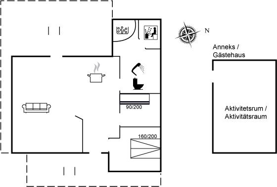 Skønt, hyggeligt sommerhus beliggende nær sø og hav. Fra en bænk på en lille høj på grunden kan man nyde udsigten over havet og skibene som sejler forbi samt solnedgangen i højsommeren. Er du til badning hele året, så er der også her rig mulighed for at smutte ned til stranden i bil og tage en hurtig dukkert og komme hjem og nyde spa og sauna. Huset er mest velegnet til den lille familie med 2 børn, da huset byder på et dobbeltværelse med dobbeltseng og 1 værelse med køjeseng. Aktivitetsrummet er placeret i annekset, hvor der også står en fryser.