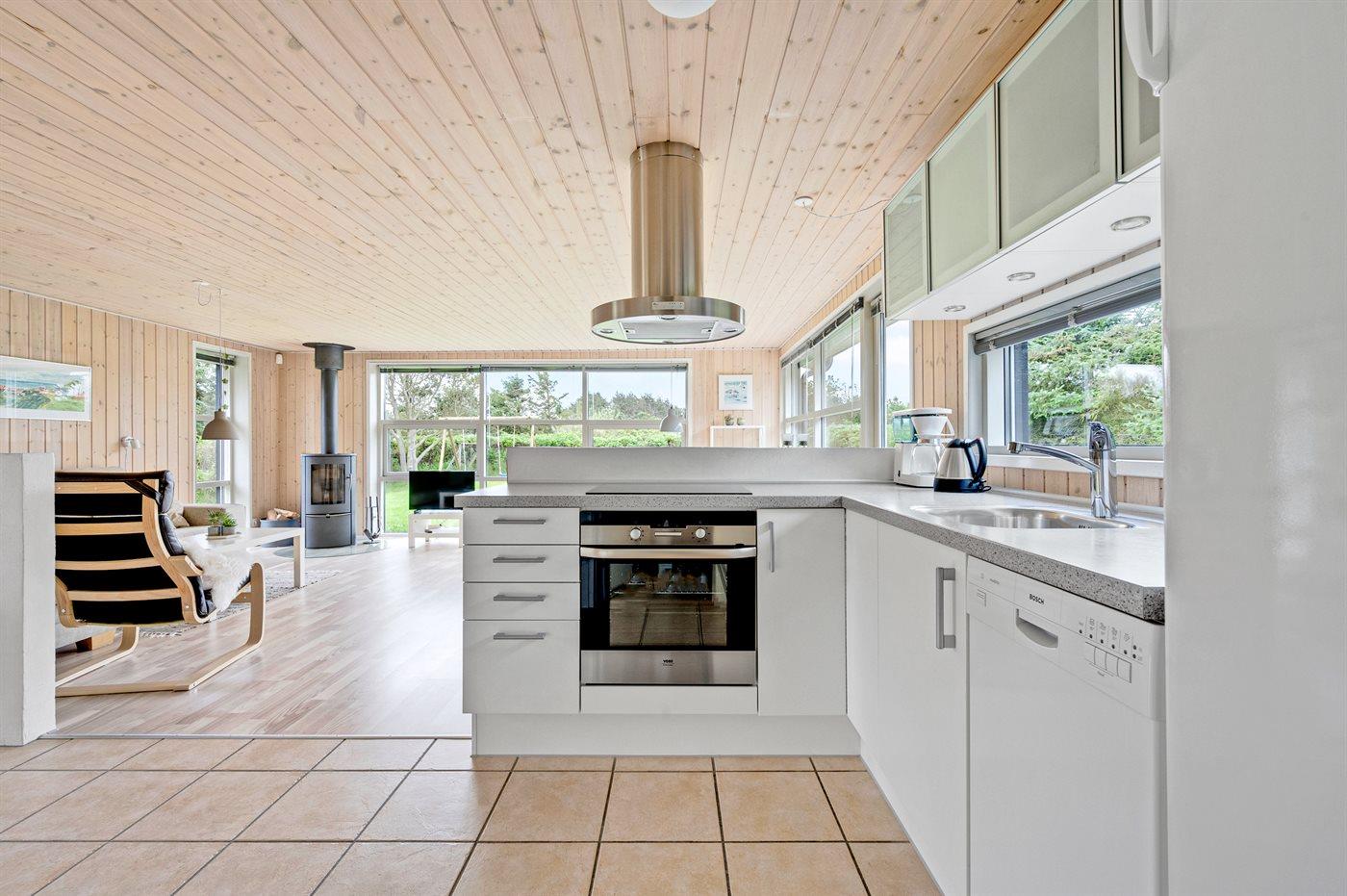 Køkkenet er udstyret med 1 køleskab. Der er 4 keramiske kogeplader, varmluftovn, mikrobølgeovn samt opvaskemaskine.