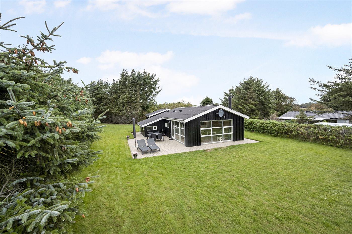 Ferieboligen er beliggende på en 1275 m² stor naturgrund. Der er 400 m til havet. Nærmeste forretning er beliggende i en afstand af 4000 m. Til ferieboligen hører 40 m² terrasseareal. Gynge. Der er installeret stik til opladning af elbil. Parkering ved ferieboligen.