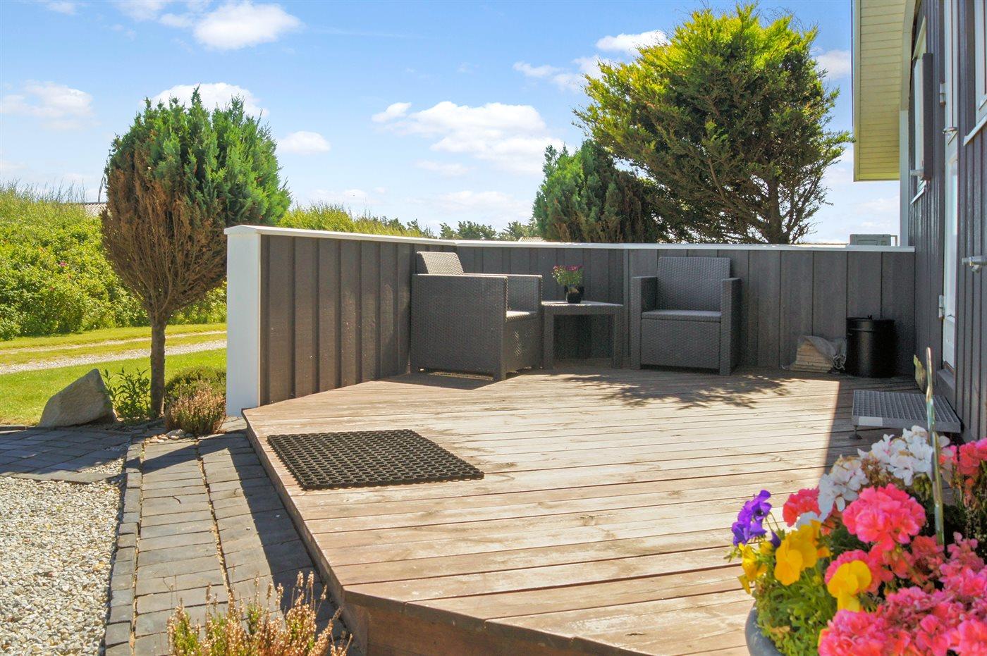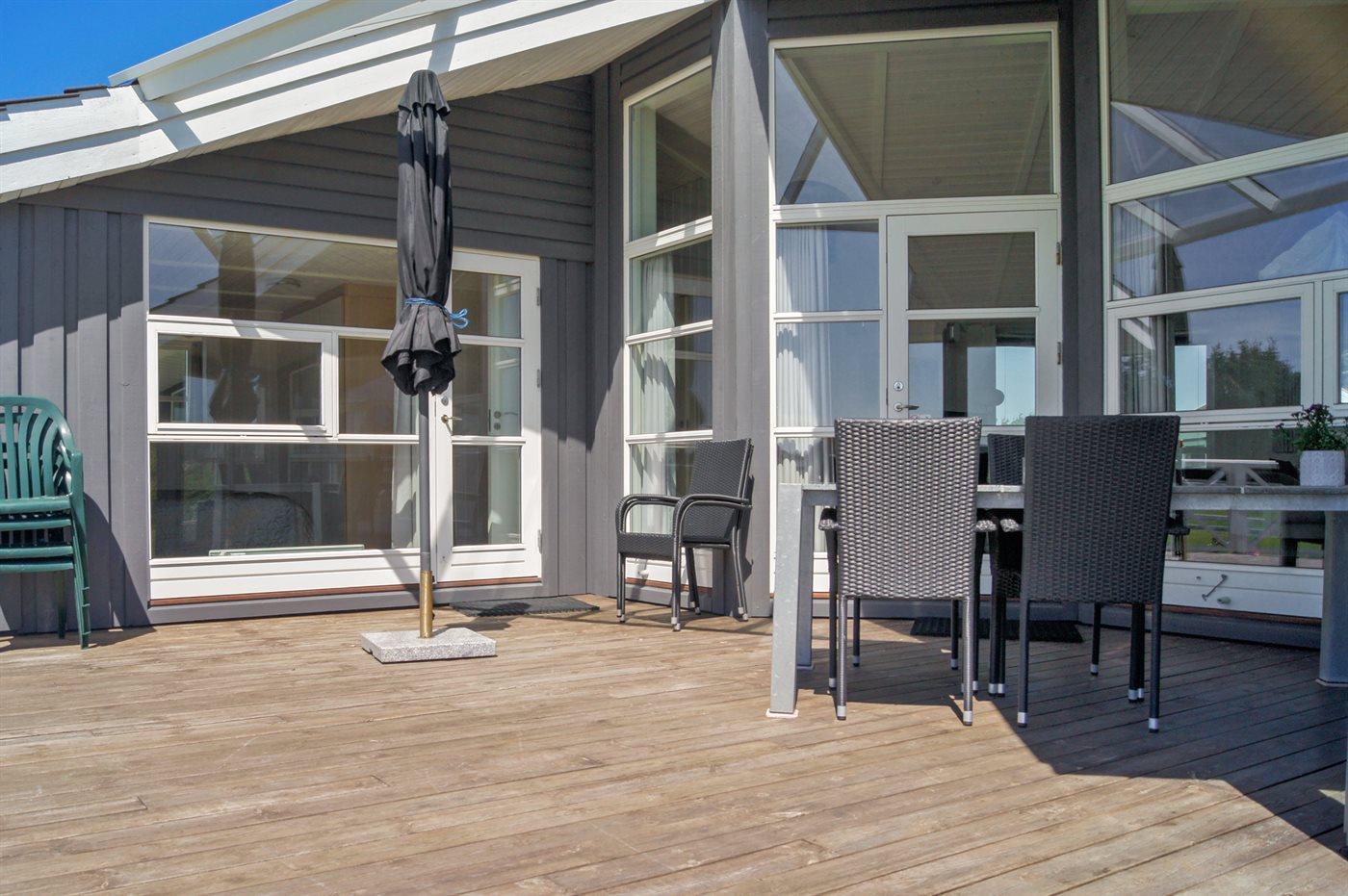 Ferieboligen er beliggende på en 1350 m² stor naturgrund. Der er 300 m til havet. Nærmeste forretning er beliggende i en afstand af 3000 m. Til ferieboligen hører 20 m² terrasseareal. Desuden er der 20 m² overdækket terrasse. Gynge. Rutchebane. Fodboldmål. Parkering ved ferieboligen.