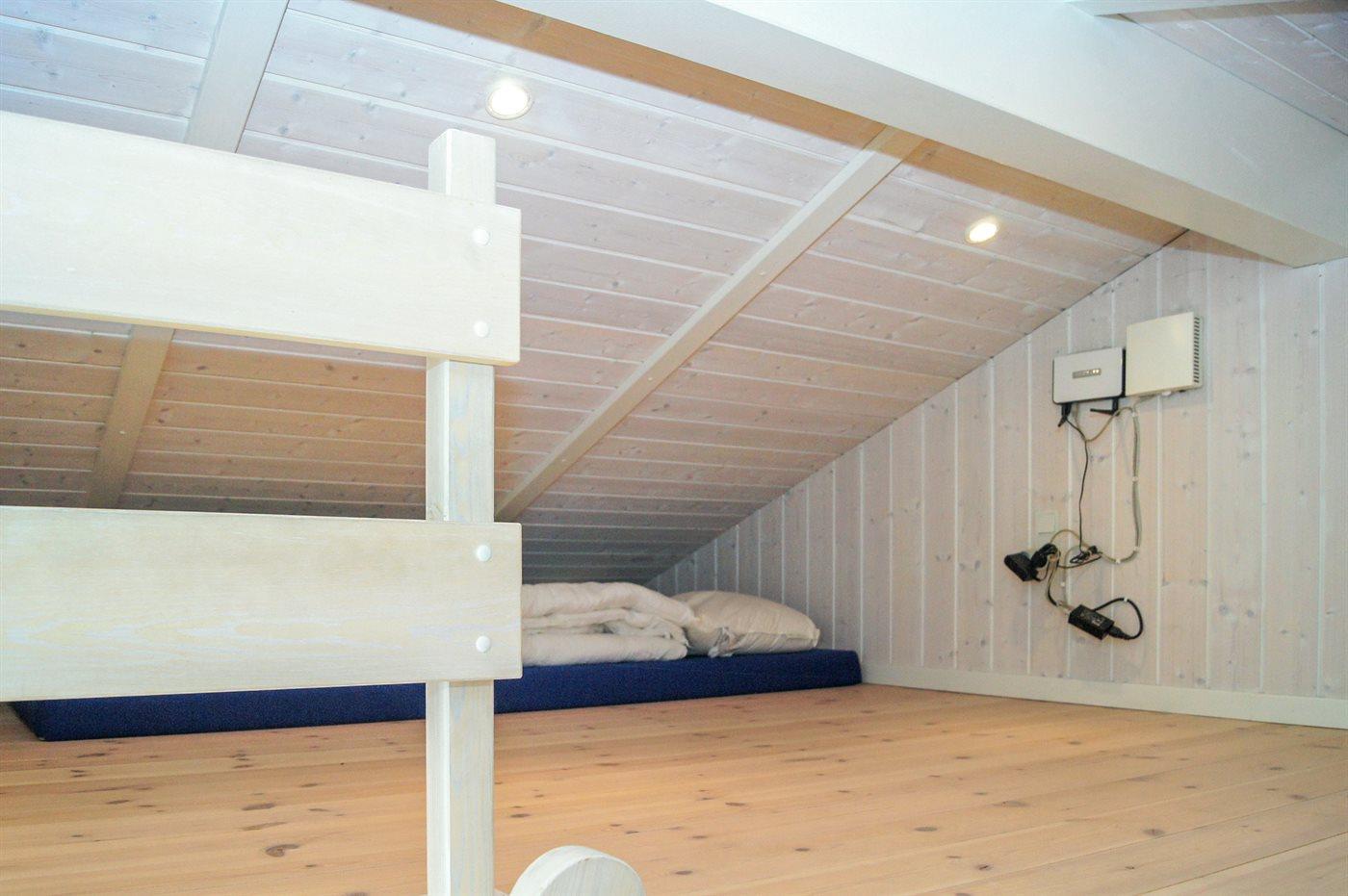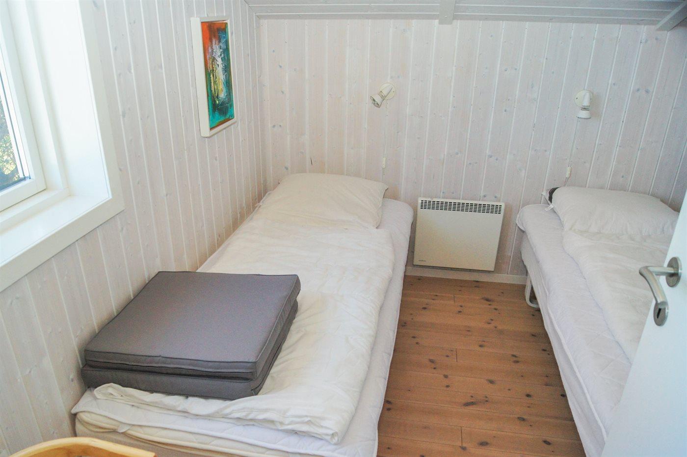 Der er i alt 3 soveværelser. Sovepladserne fordeler sig på: 4 sovepladser i dobbeltsenge. 2 sovepladser i enkeltsenge. Derudover er der 1 stk. barneseng.