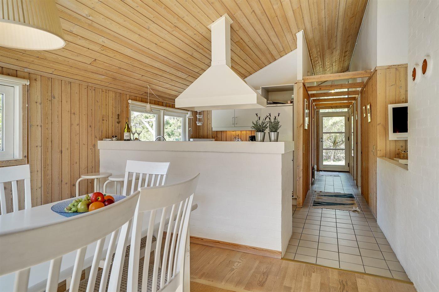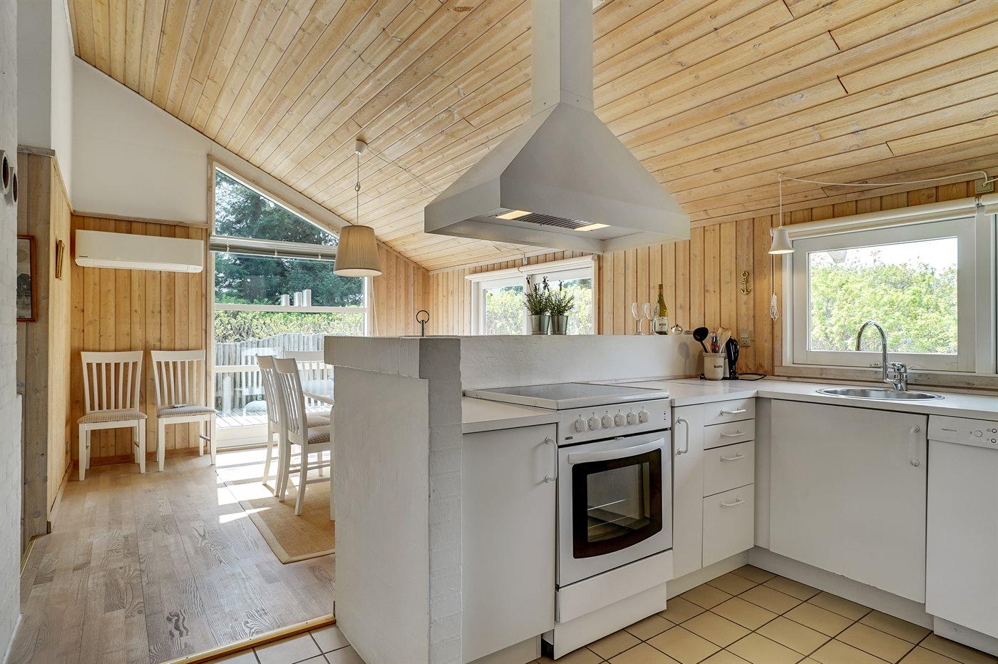 Køkkenet er udstyret med 1 køleskab. Der er 4 keramiske kogeplader, varmluftovn, mikrobølgeovn samt opvaskemaskine.