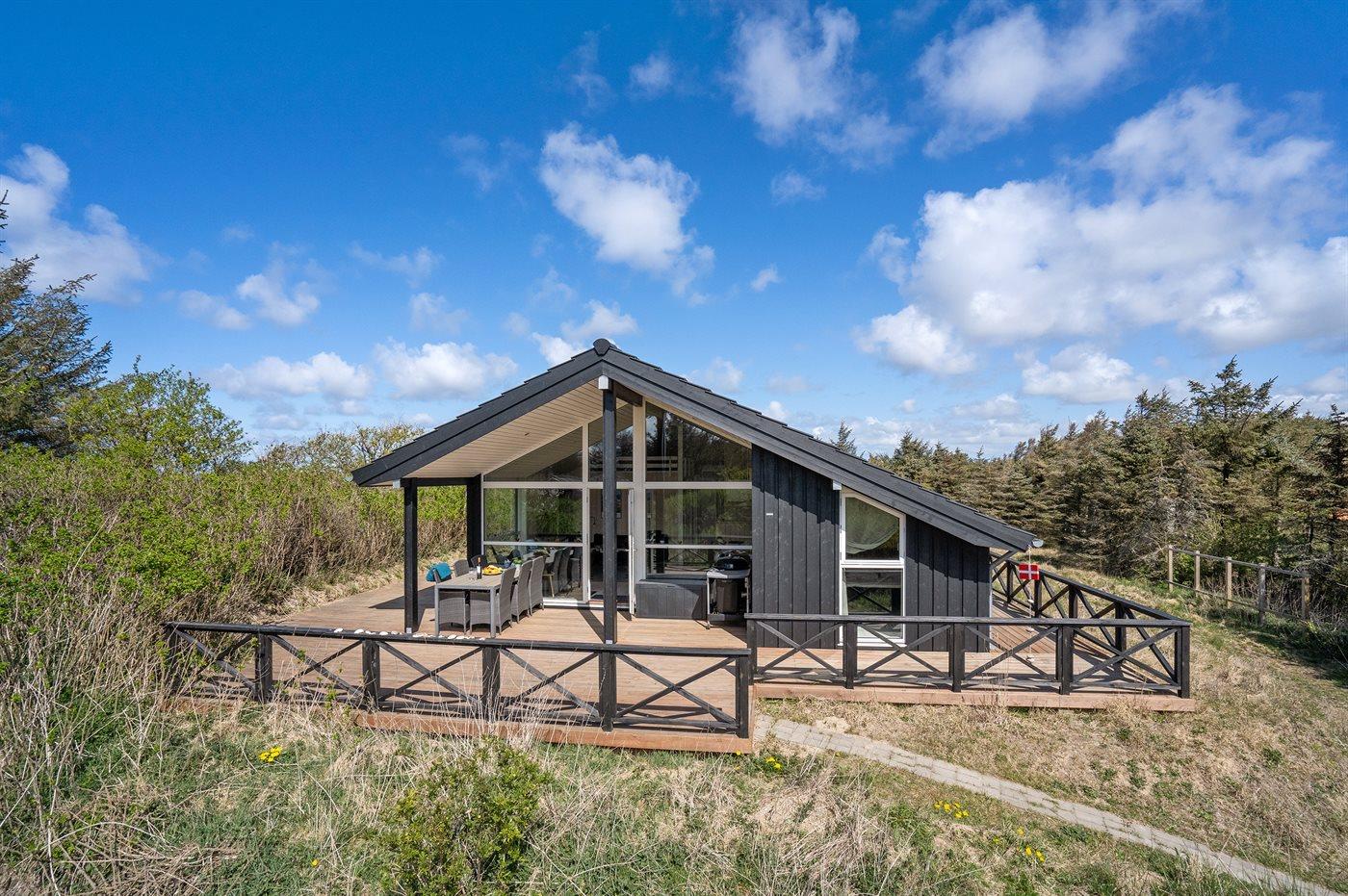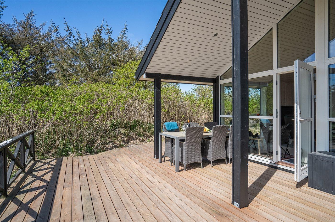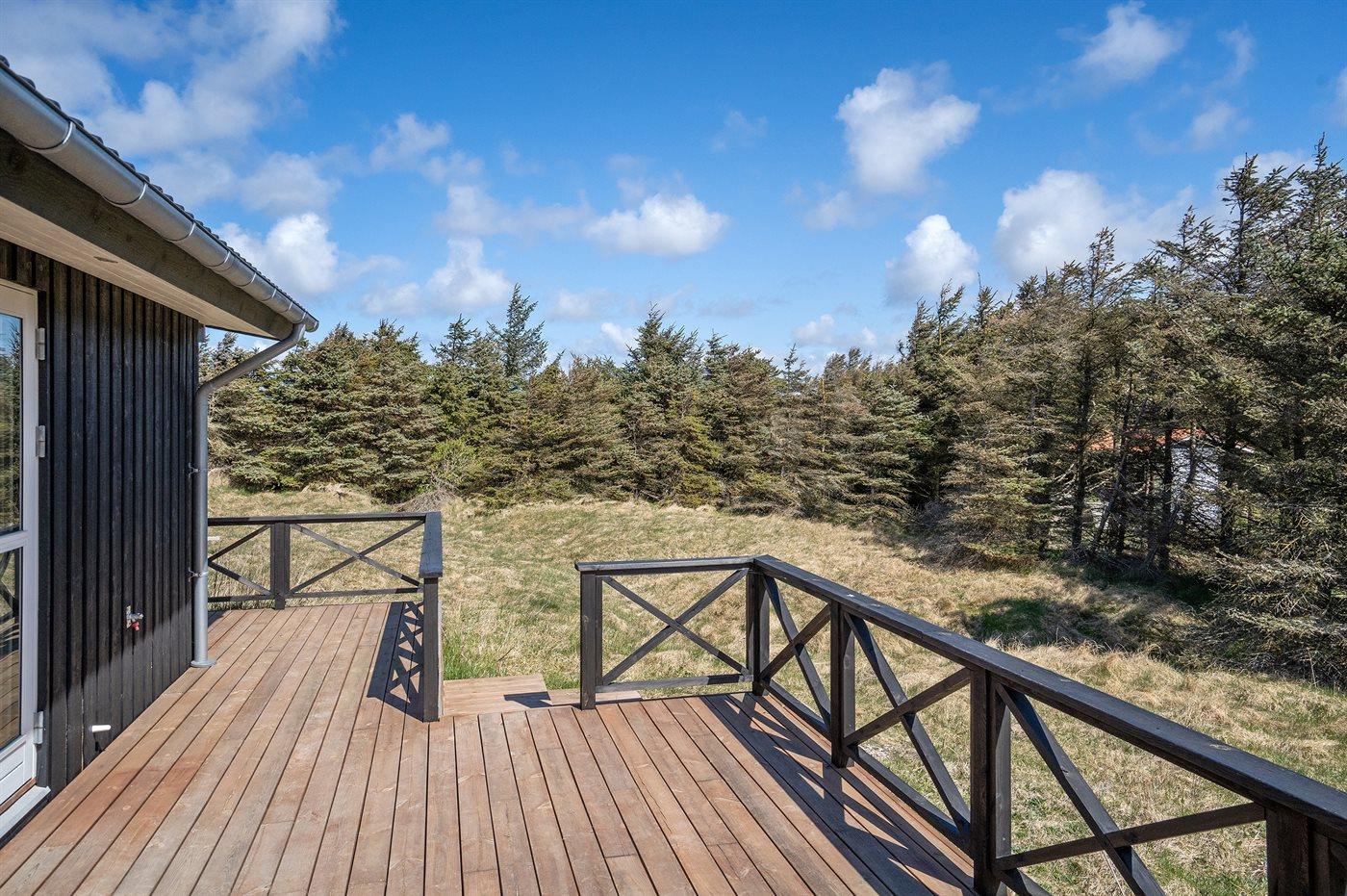 Ferieboligen er beliggende på en 2141 m² stor naturgrund. Der er 300 m til havet. Nærmeste forretning er beliggende i en afstand af 4500 m. Til ferieboligen hører 87 m² terrasseareal. Desuden er der 13 m² overdækket terrasse. Sandkasse. Parkering ved ferieboligen.
