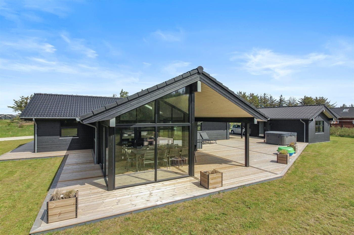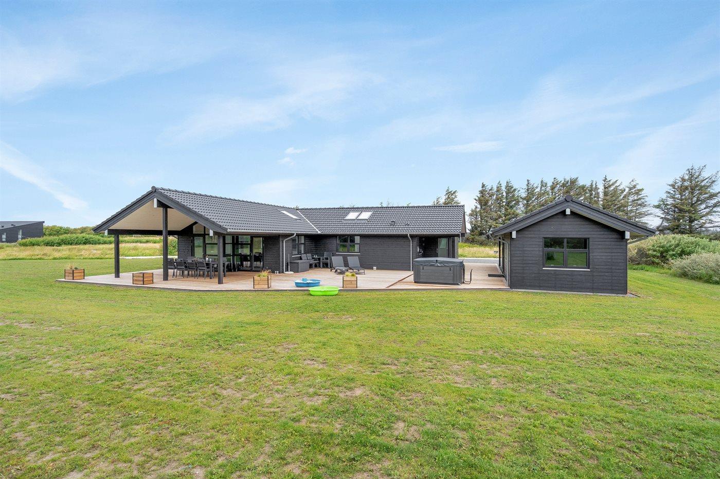 Dette dejlige og helt nye aktivitetshus ligger i Nr. Lyngby - et område som er kendt for den stejle kyststrækning mod havet og stranden. Dette dejlige sommerhus er velegnet til såvel 1 som 2 familier, som ønsker at holde en afslappende ferie i hinandens selskab. Til huset hører et stort og til dels overdækket terrasseareal samt en skøn udendørs spa, som kan benyttes hele året rundt.