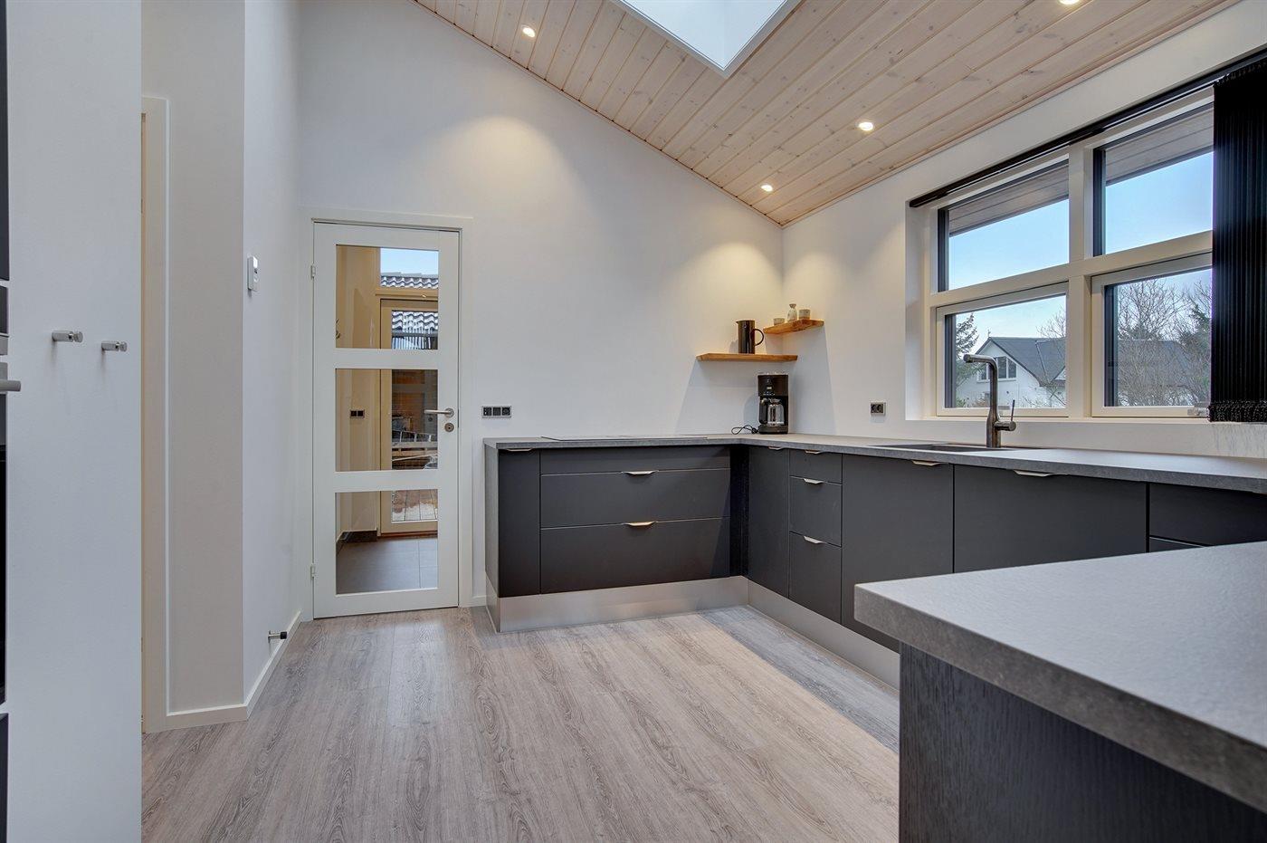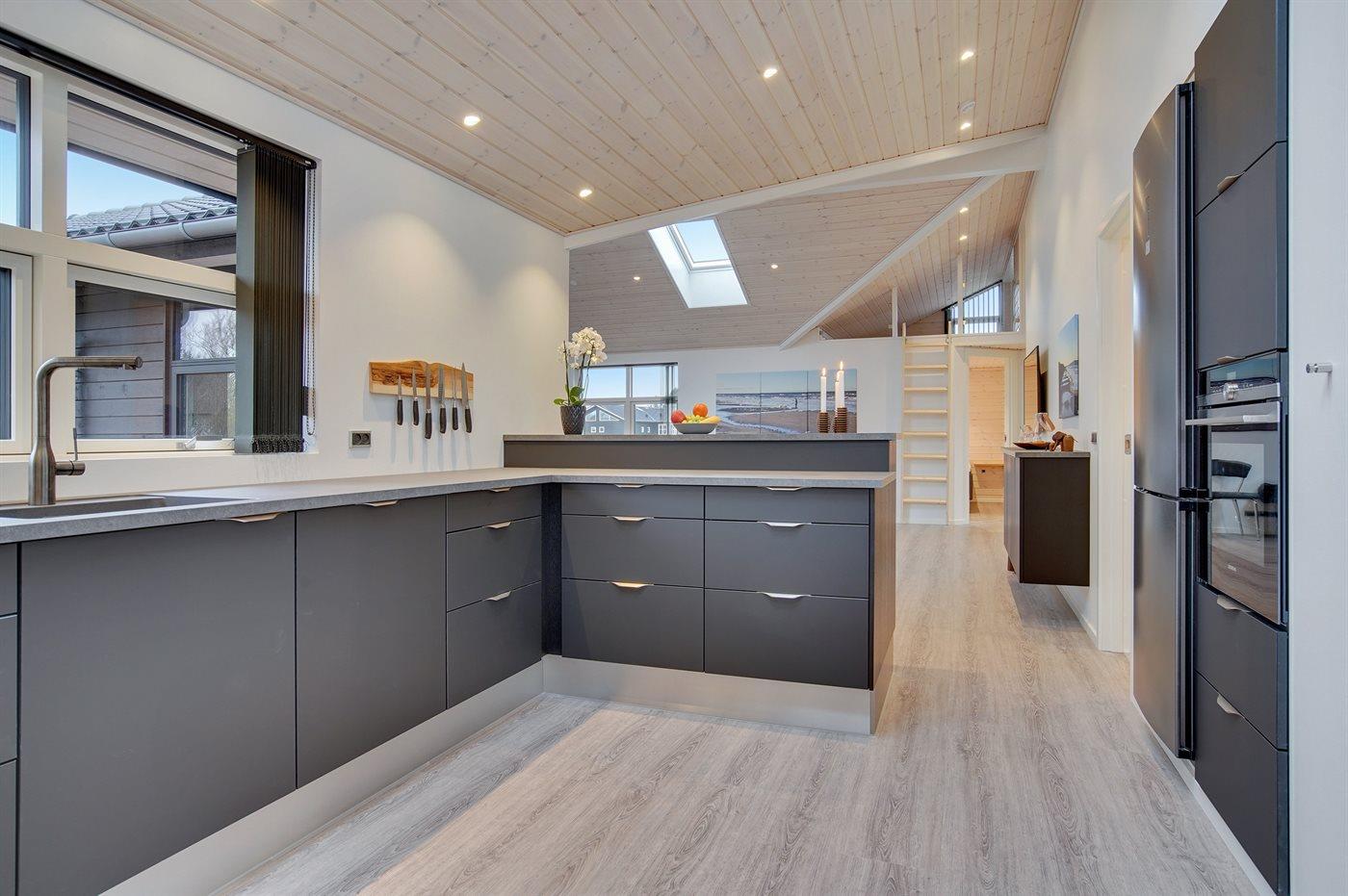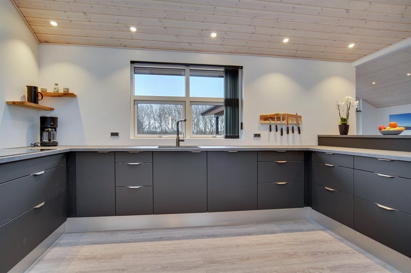 Køkkenet er udstyret med 2 køleskabe. (Ekstra køleskab kan tilsluttes i aktivitetsrummet). Der er 4 induktionskogeplader, varmluftovn, mikrobølgeovn samt opvaskemaskine.