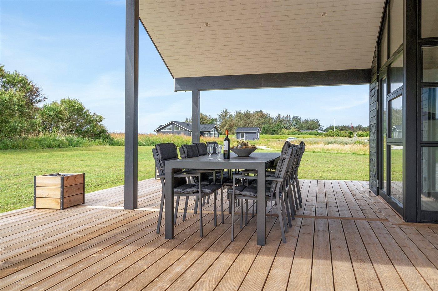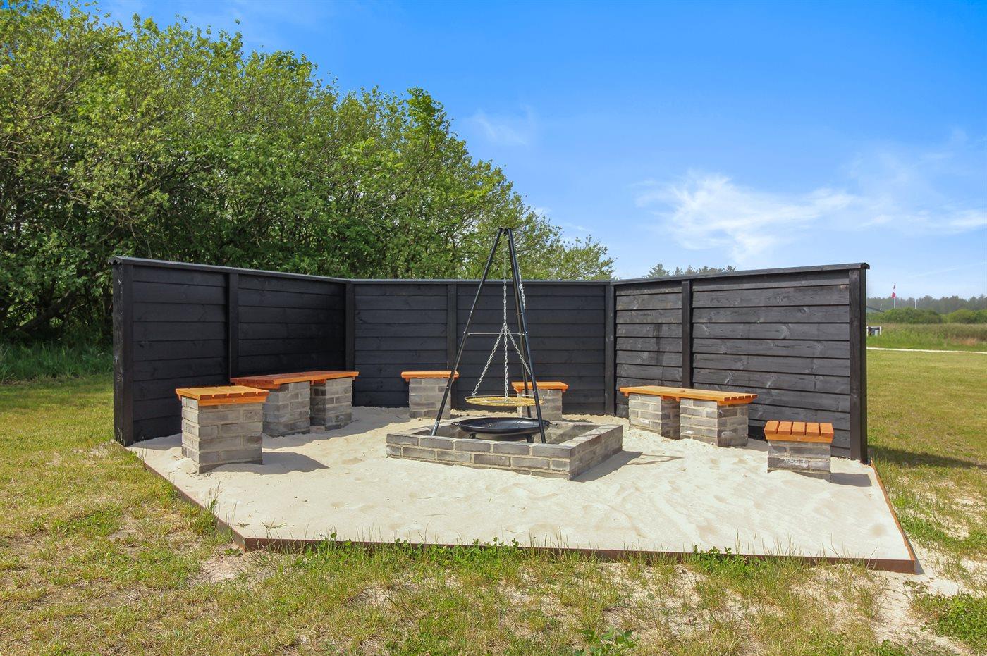 Ferieboligen er beliggende på en 1901 m² stor naturgrund. Der er 700 m til havet. Nærmeste forretning er beliggende i en afstand af 6000 m. Til ferieboligen hører 220 m² terrasseareal. Desuden er der 39 m² overdækket terrasse. Der er redskabsrum. Gynge. Sandkasse. Nedgravet trampolin. Udendørs spil. Grill til rådighed. Der er installeret stik til opladning af elbil. Parkering ved ferieboligen.