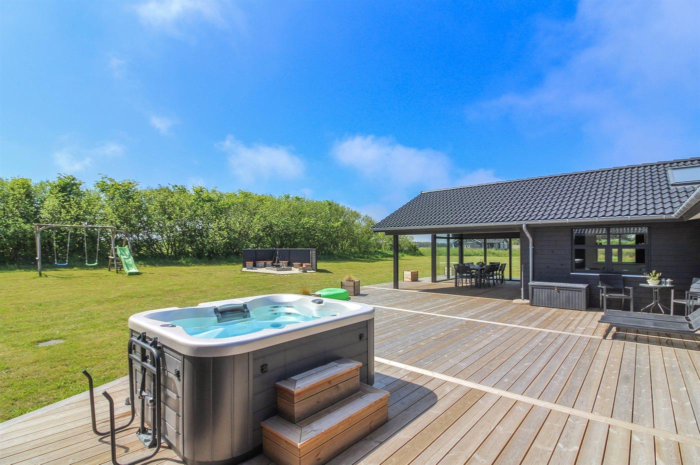 Der er mulighed for afslapning i udendørs standvandsspa til 5 personer.