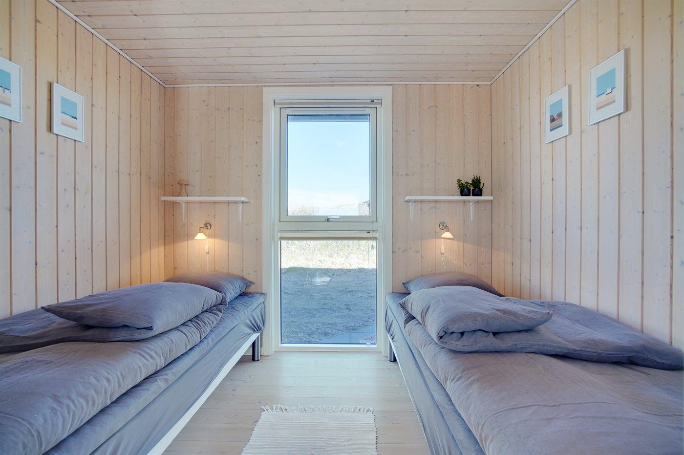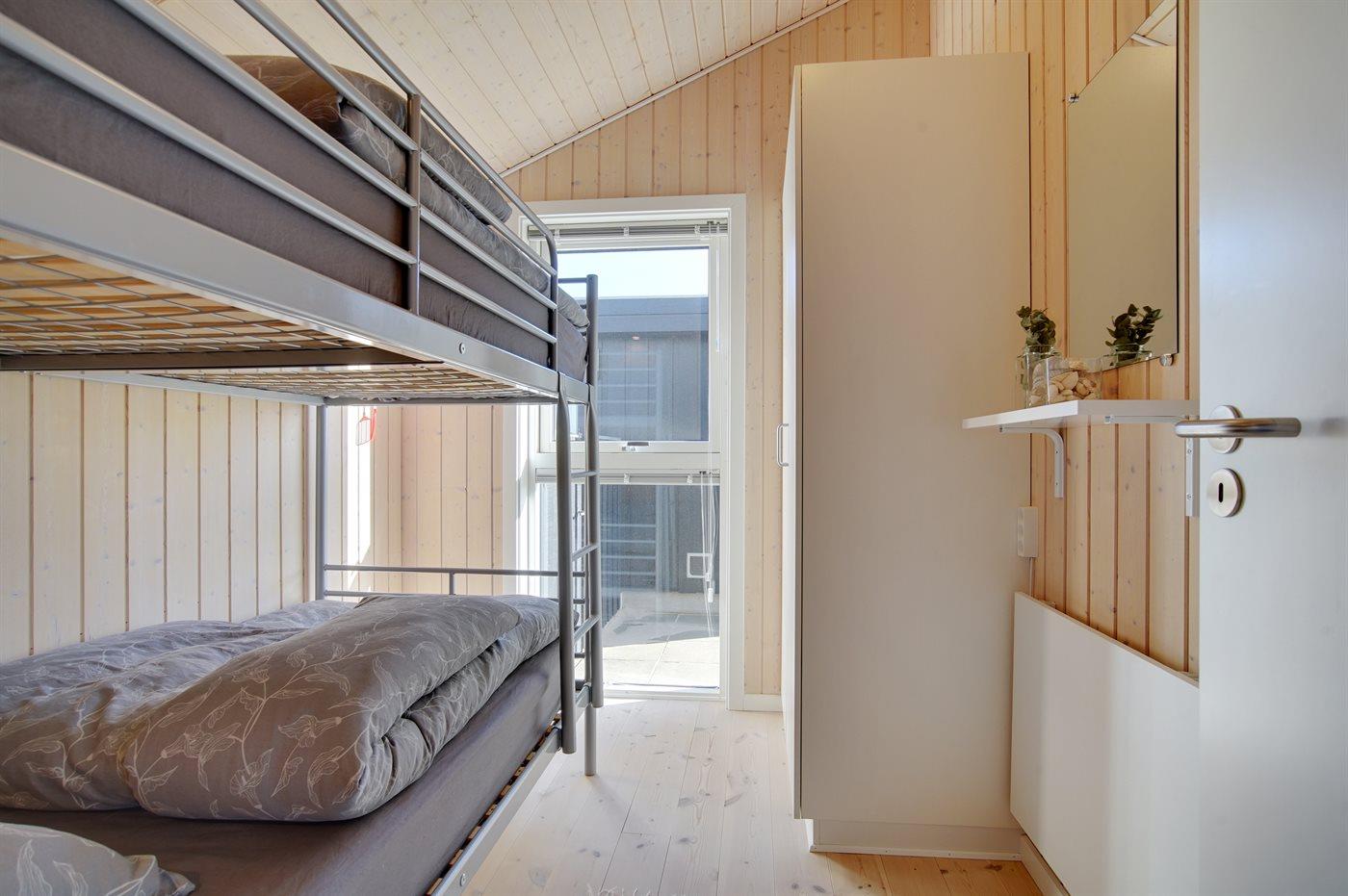Der er i alt 3 soveværelser. Sovepladserne fordeler sig på: 2 sovepladser i dobbeltseng. 2 sovepladser i enkeltsenge. 2 sovepladser i køjeseng. Derudover er der 1 stk. barneseng.