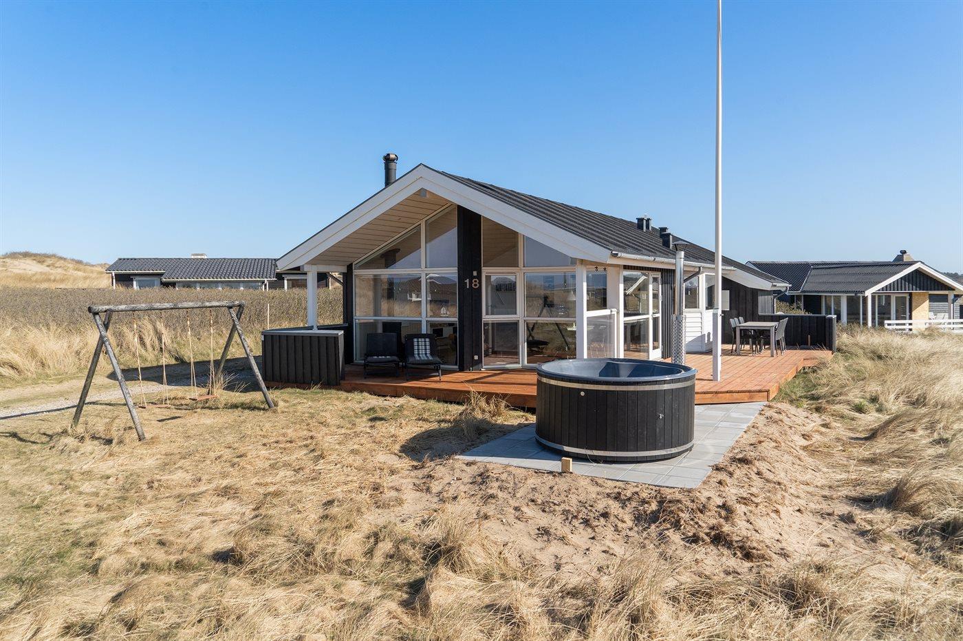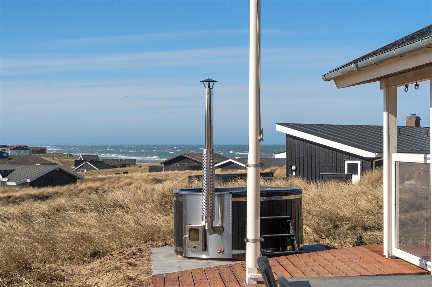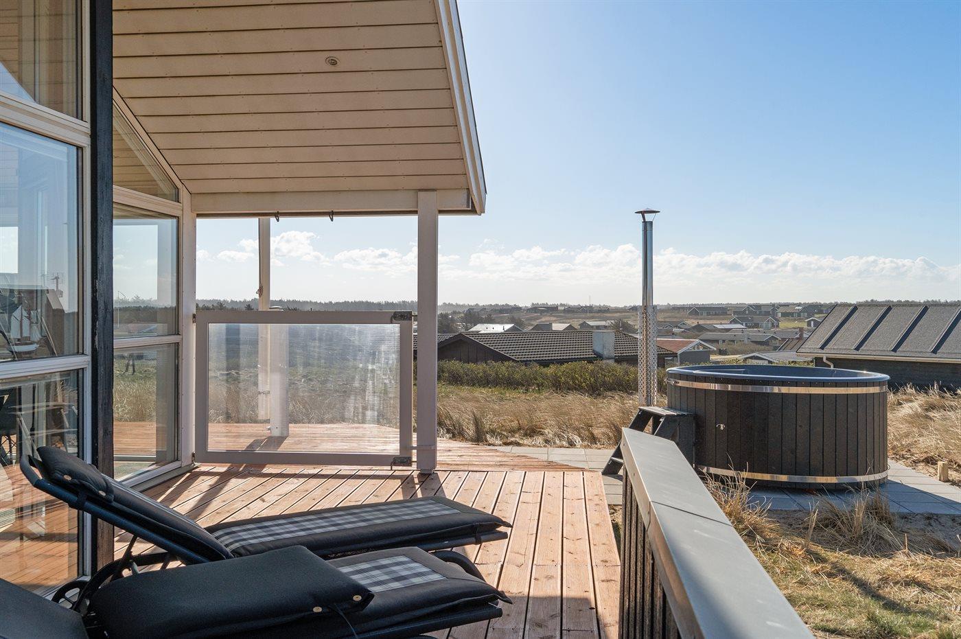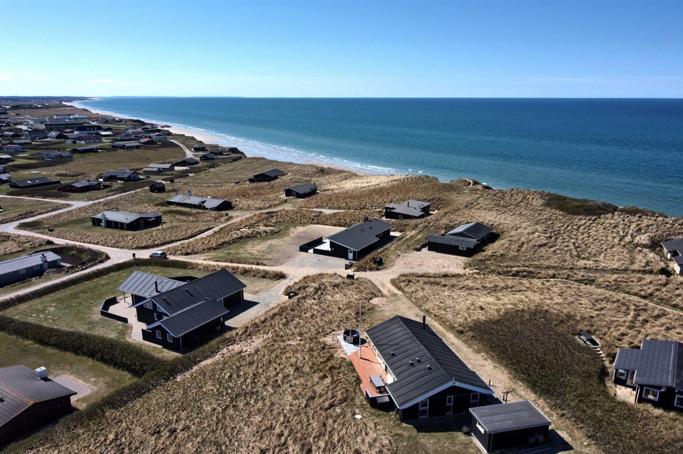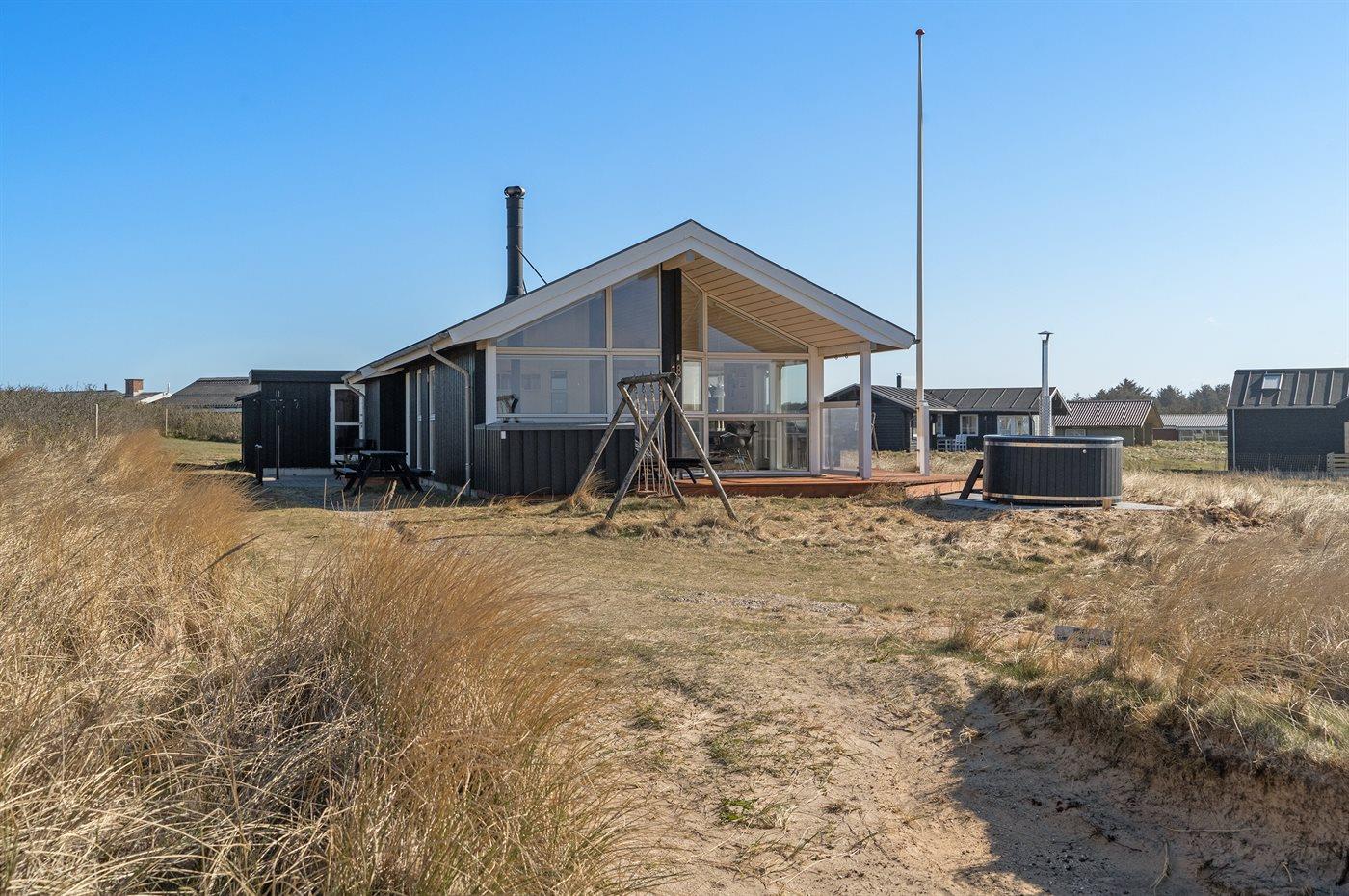 Ferieboligen er beliggende på en 1250 m² stor klitgrund. Der er 100 m til havet. Nærmeste forretning er beliggende i en afstand af 5000 m. Der er en golfbane i en afstand af 7000 m. Til ferieboligen hører 35 m² terrasseareal. Desuden er der 15 m² overdækket terrasse. Der er redskabsrum. Gynge. Parkering ved ferieboligen.