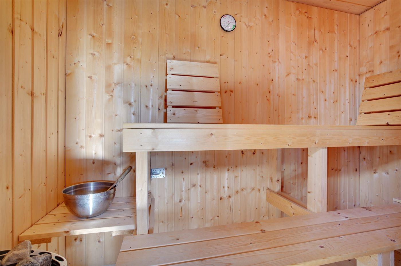 Der er 1 badeværelse med bruseniche og 1 toilet.. Der er gulvvarme på 1 badeværelse. I saunaen er der mulighed for afslapning.