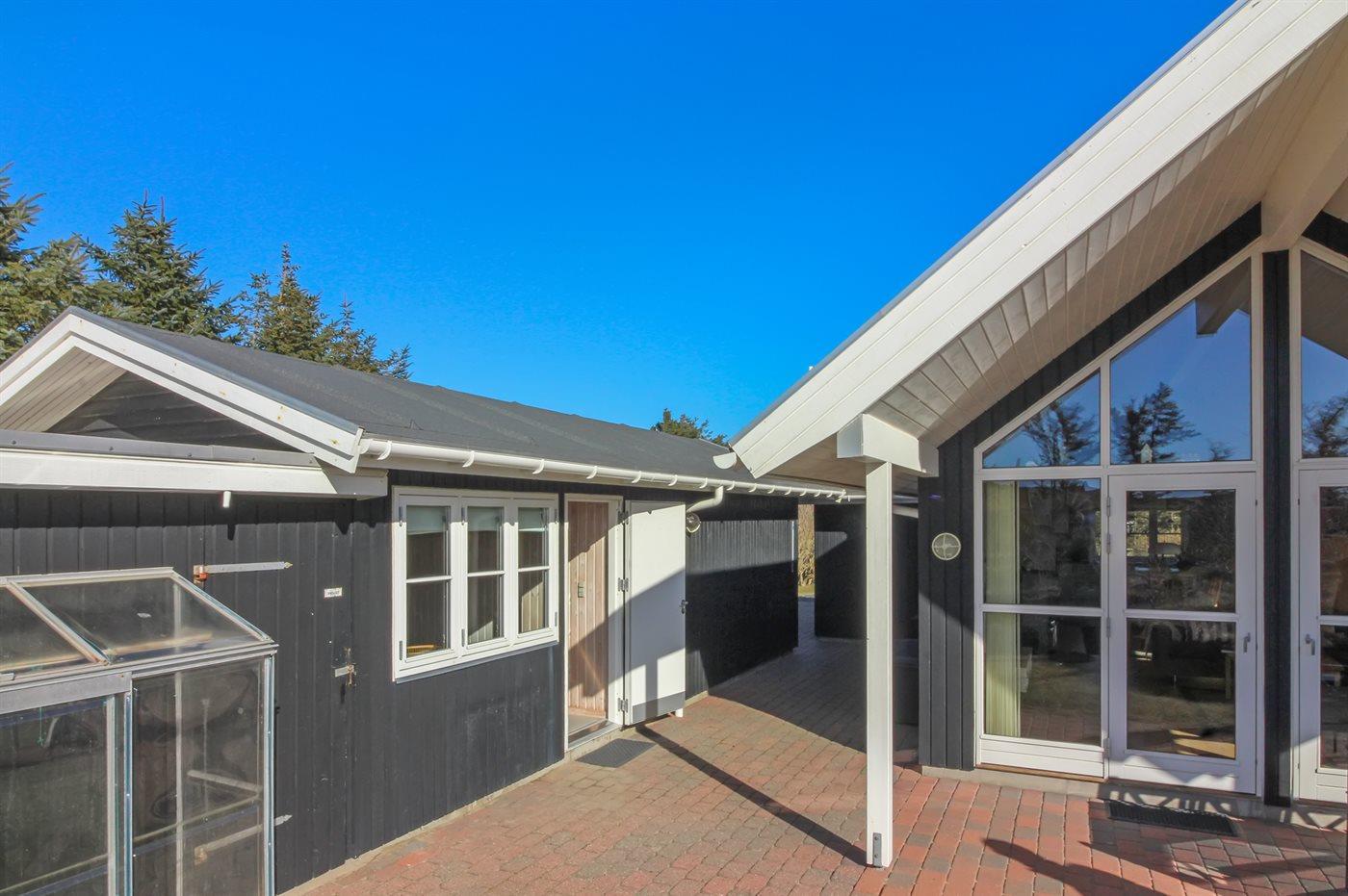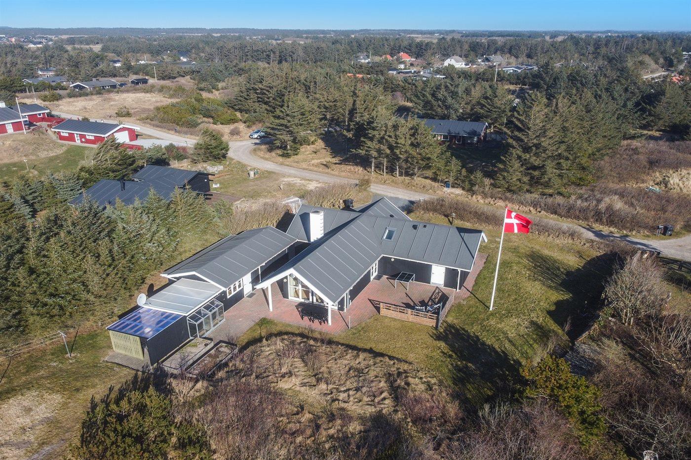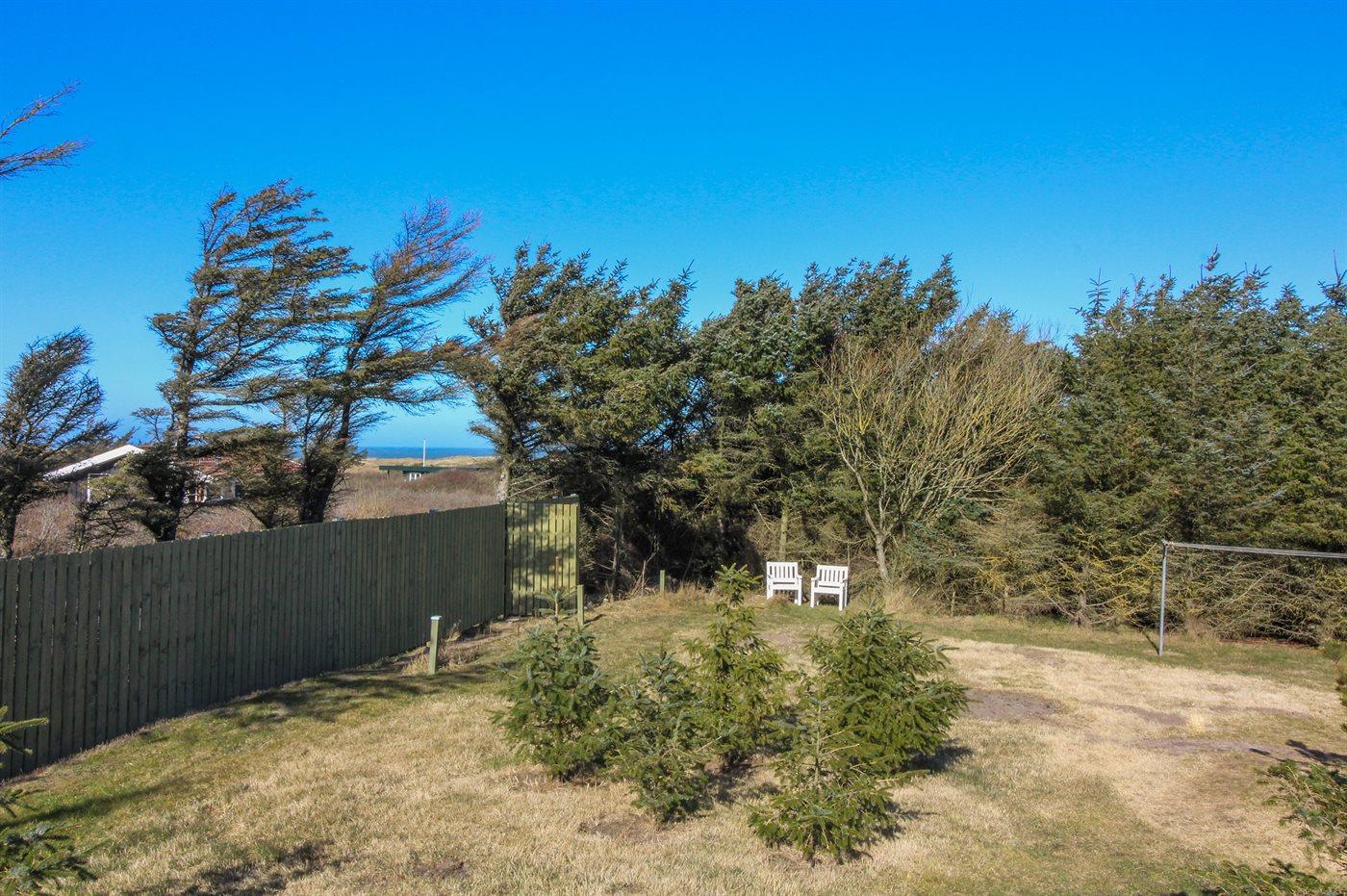 Ferieboligen er beliggende på en 1474 m² stor naturgrund. Der er 275 m til havet. Nærmeste forretning er beliggende i en afstand af 3700 m. Der er en golfbane i en afstand af 4800 m. Til ferieboligen hører 55 m² terrasseareal. Der er installeret stik til opladning af elbil. Type 2 stik. Parkering ved ferieboligen.