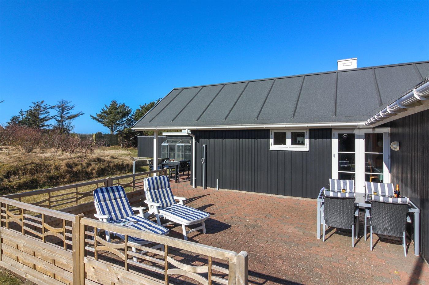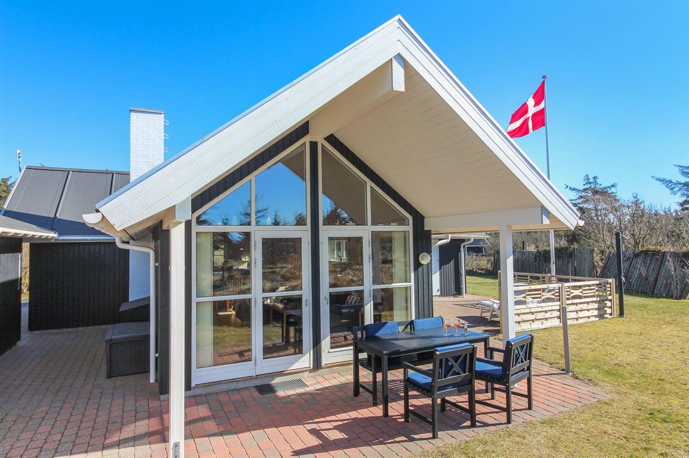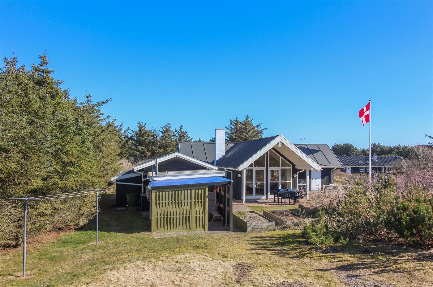 Ferieboligen er beliggende på en 1474 m² stor naturgrund. Der er 275 m til havet. Nærmeste forretning er beliggende i en afstand af 3700 m. Der er en golfbane i en afstand af 4800 m. Til ferieboligen hører 55 m² terrasseareal. Der er installeret stik til opladning af elbil. Type 2 stik. Parkering ved ferieboligen.