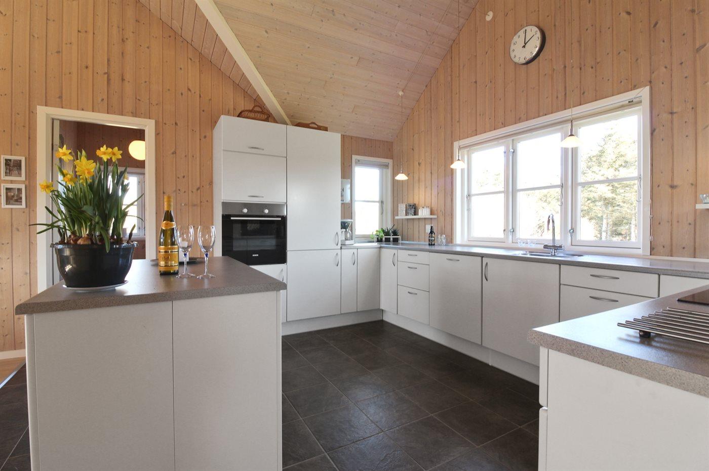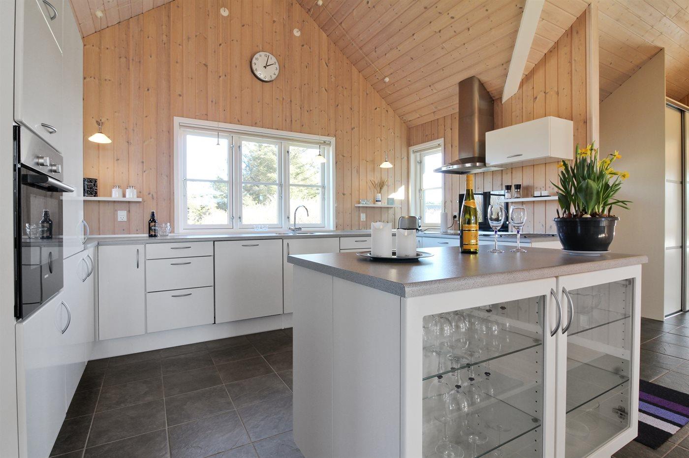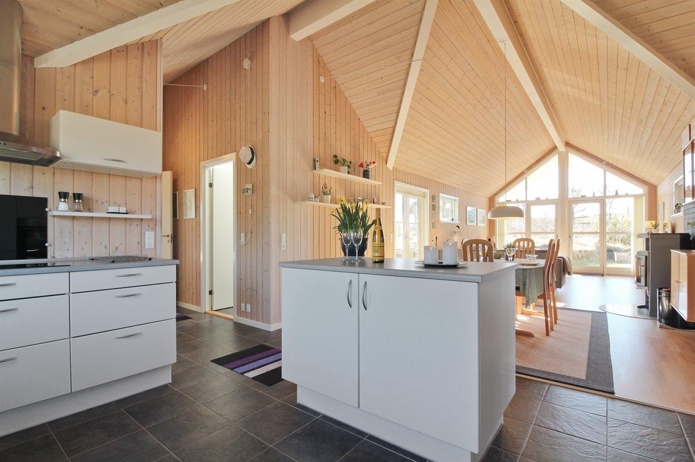 Køkkenet er udstyret med 1 køleskab. Der er 4 keramiske kogeplader, varmluftovn, mikrobølgeovn samt opvaskemaskine.