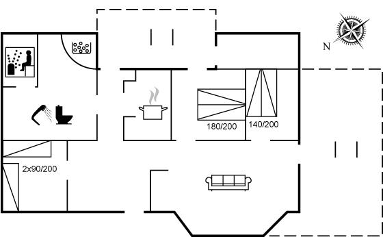 Der er i alt 3 soveværelser. Sovepladserne fordeler sig på: 3 sovepladser i dobbeltsenge. 2 sovepladser i enkeltsenge.