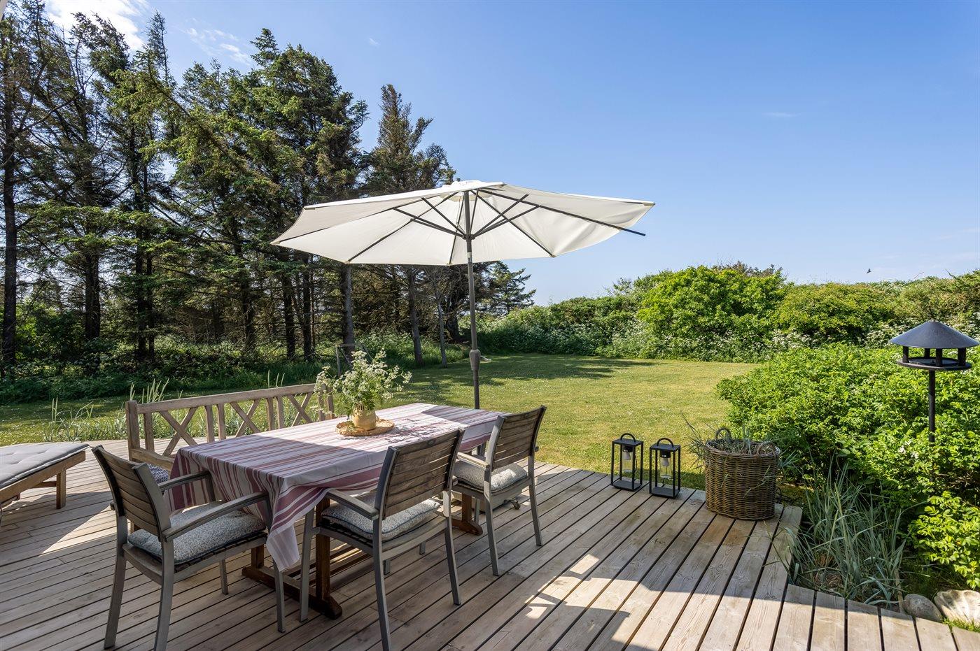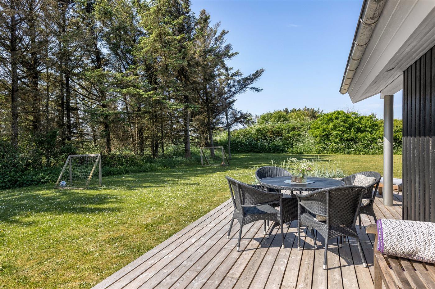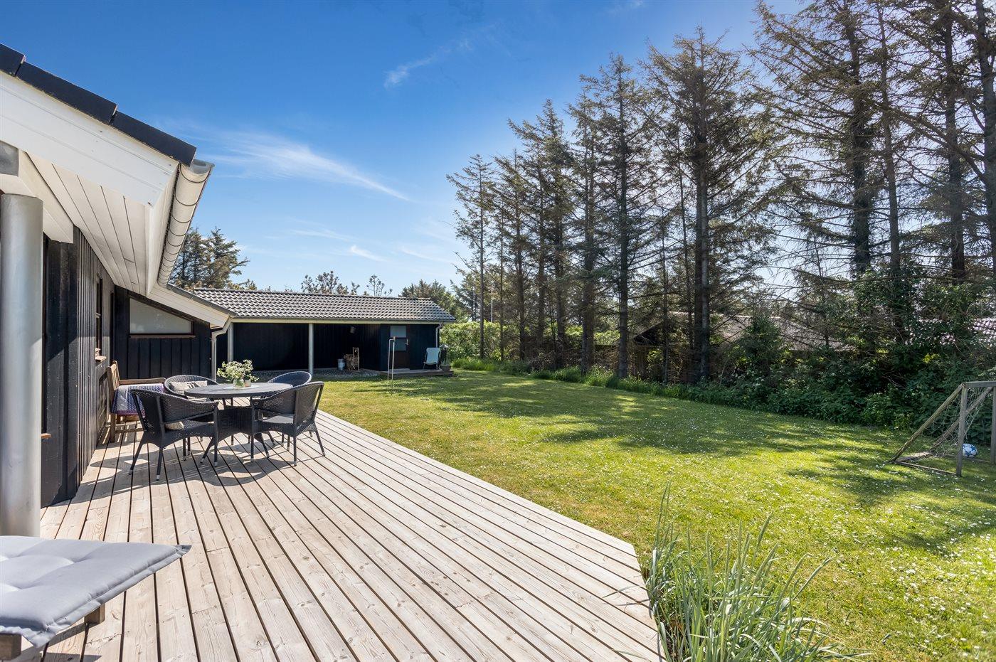 Ferieboligen er beliggende på en 1346 m² stor naturgrund. Der er 300 m til havet. Nærmeste forretning er beliggende i en afstand af 1500 m. Til ferieboligen hører åbent terrasseareal. Desuden er der overdækket terrasse. Gynge. Sandkasse. Grill til rådighed. Der er carport til rådighed. Parkering ved ferieboligen.