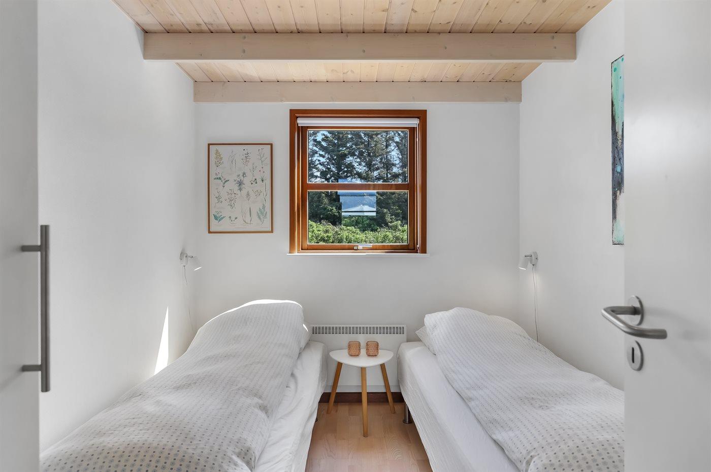 Der er i alt 3 soveværelser. Sovepladserne fordeler sig på: 4 sovepladser i dobbeltsenge. 2 sovepladser i enkeltsenge. 2 sovepladser på madrasser. 2 af disse sovepladser befinder sig på husets hems. Derudover er der 1 stk. barneseng.