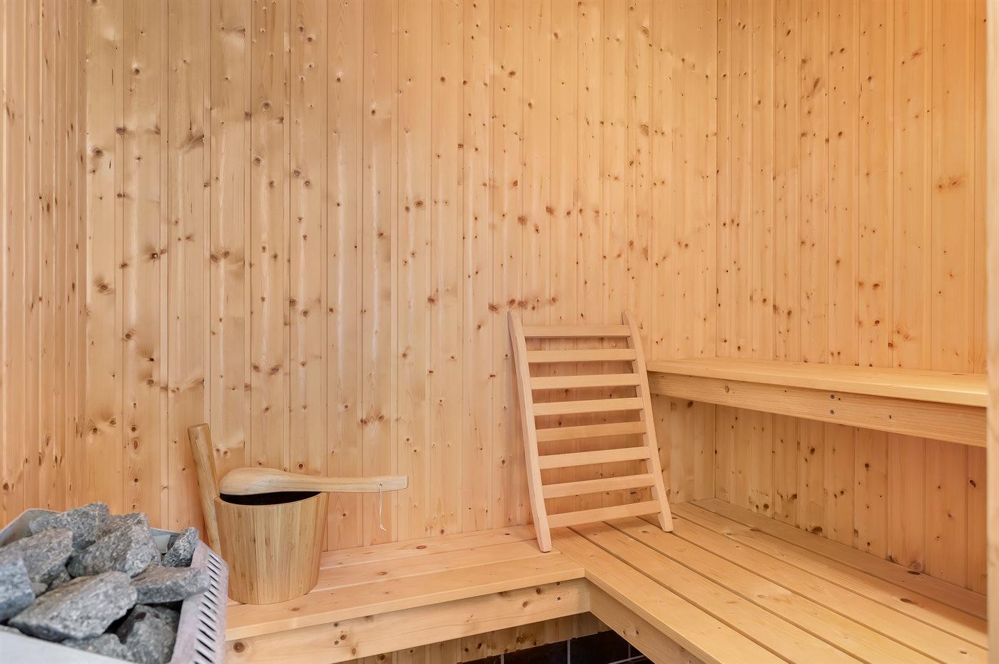Der er 2 badeværelser med bruseniche og 2 toiletter. Der er gulvvarme på 2 badeværelser. I saunaen er der mulighed for afslapning.