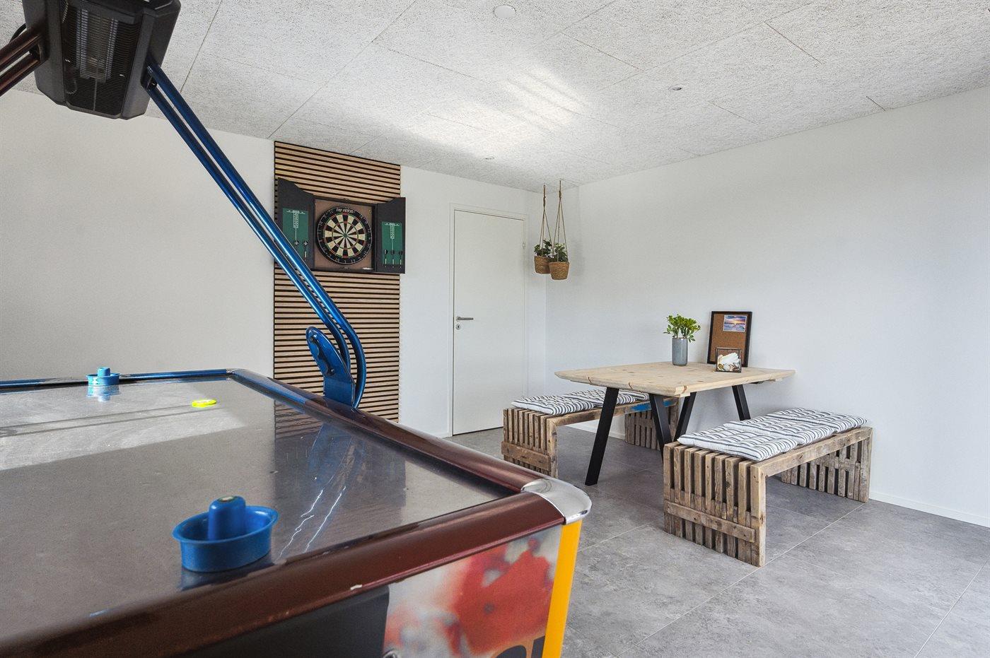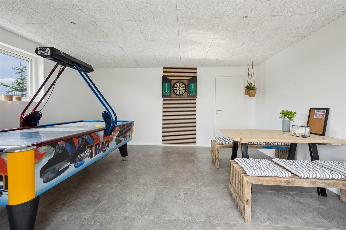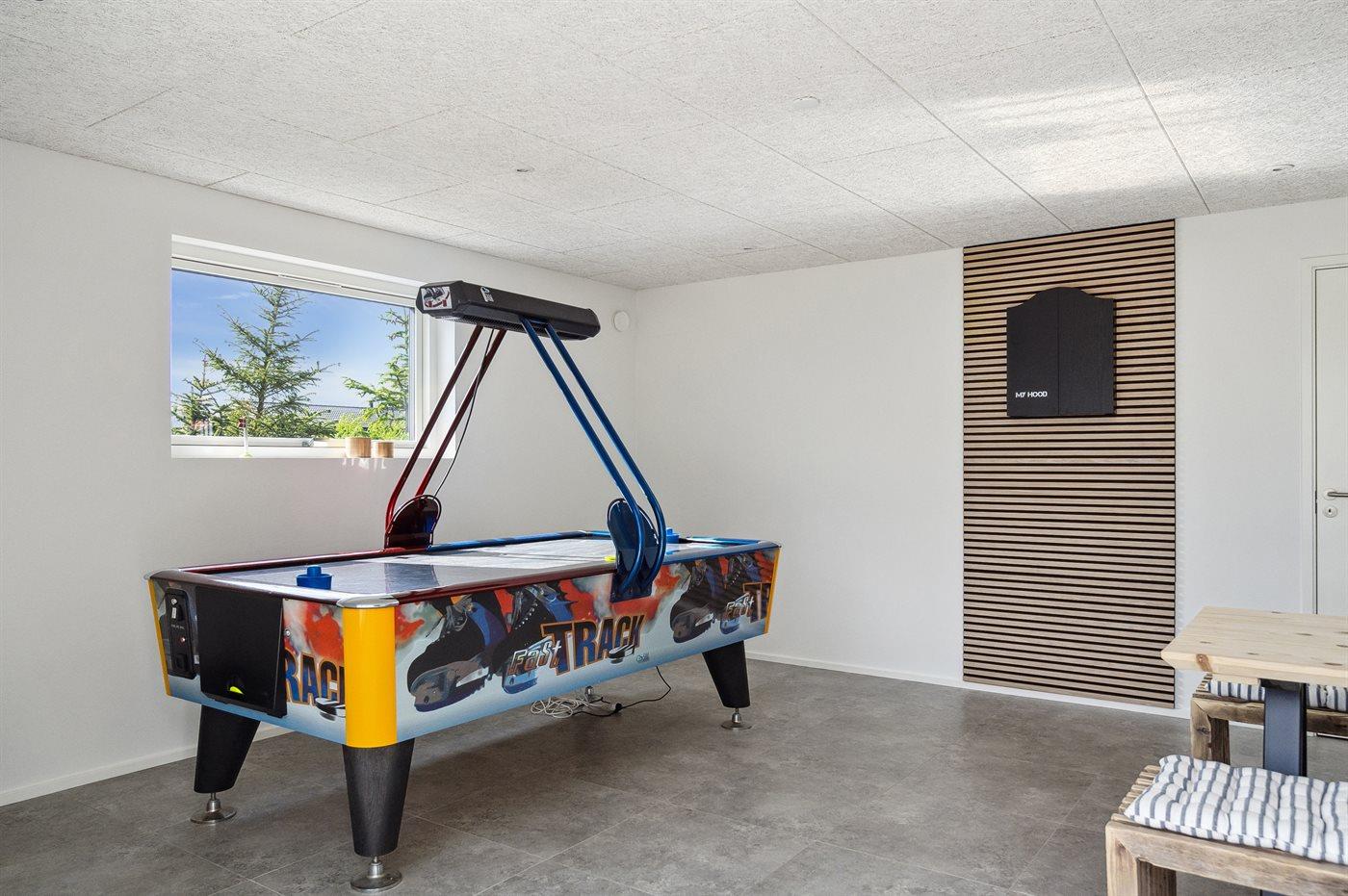 I aktivitetsrummet er der følgende udstyr: Dart. Airhockey. Borde og bænke.