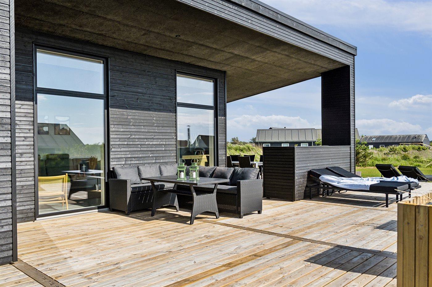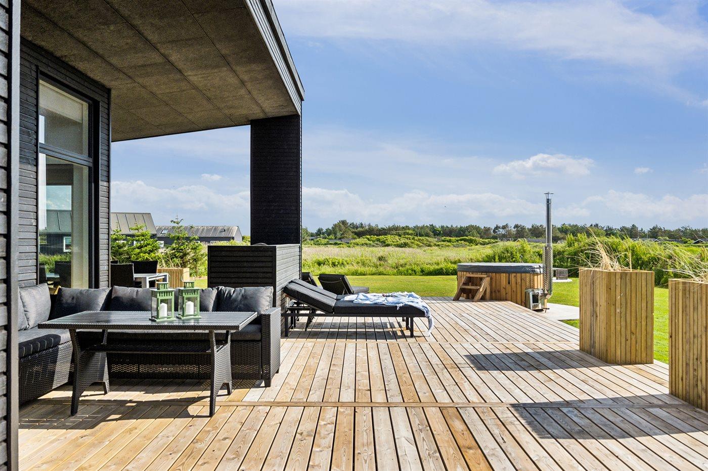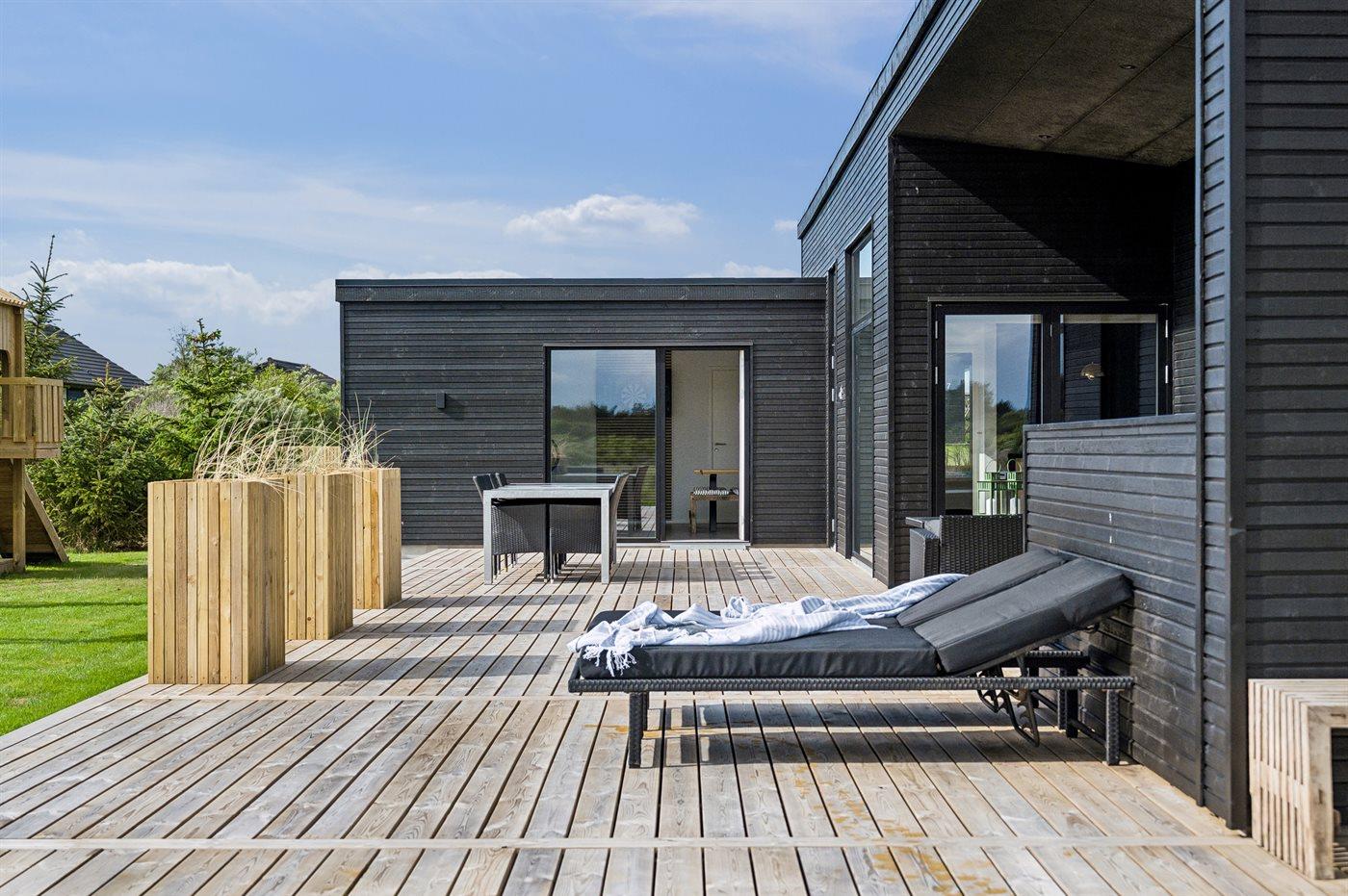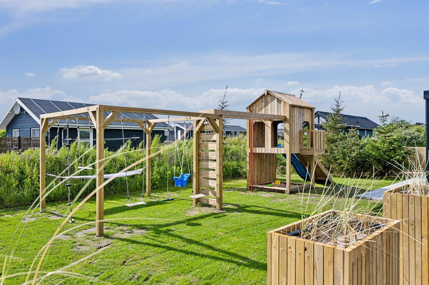 Ferieboligen er beliggende på en 1555 m² stor naturgrund. Der er 400 m til havet. Nærmeste forretning er beliggende i en afstand af 6000 m. Til ferieboligen hører åbent terrasseareal. Desuden er der overdækket terrasse. Der er redskabsrum. Gynge. Sandkasse. Legetårn. Rutchebane. Grill til rådighed. Der er installeret stik til opladning af elbil. Parkering ved ferieboligen.