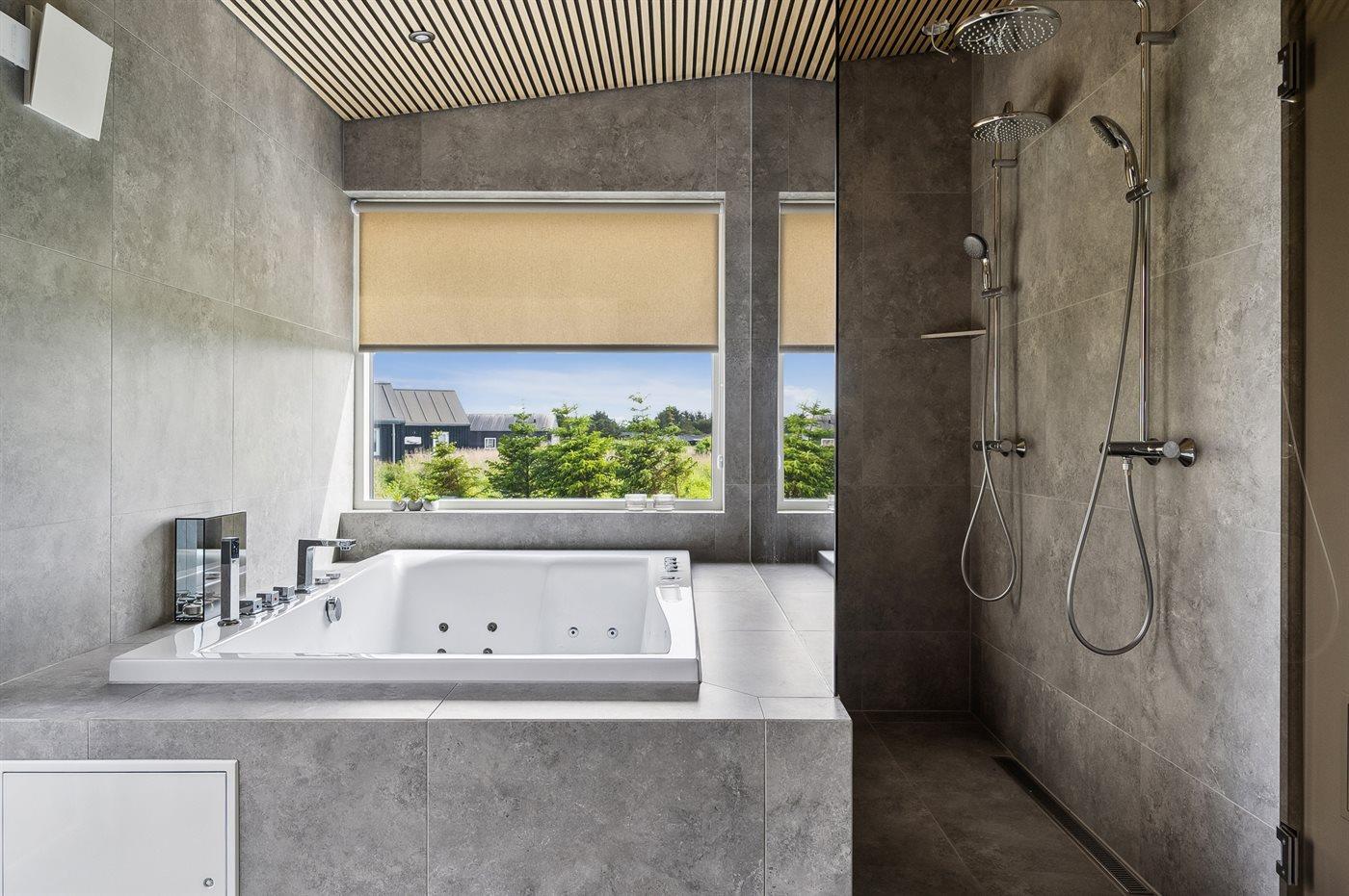 Der er 2 badeværelser med bruseniche og 2 toiletter. Der er gulvvarme på 2 badeværelser. I saunaen er der mulighed for afslapning.