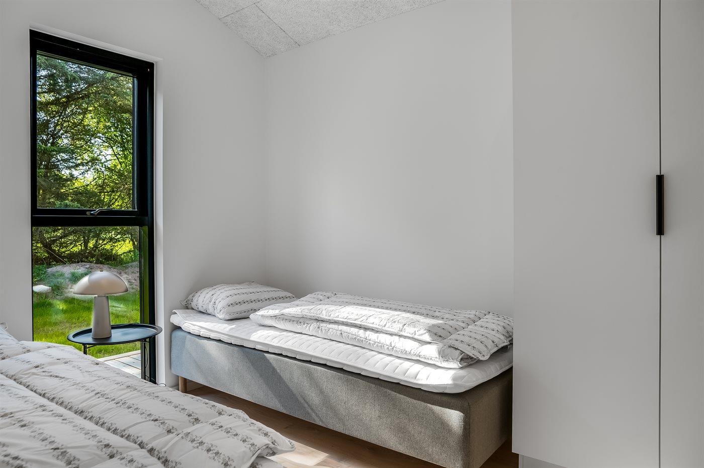 Der er i alt 5 soveværelser. Sovepladserne fordeler sig på: 6 sovepladser i dobbeltsenge. 2 sovepladser i enkeltsenge. 2 sovepladser i sovesofa (dobbelt). 2 af disse sovepladser befinder sig i et anneks.