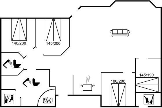 Der er i alt 4 soveværelser. Sovepladserne fordeler sig på: 8 sovepladser i dobbeltsenge. Derudover er der 1 stk. barneseng.