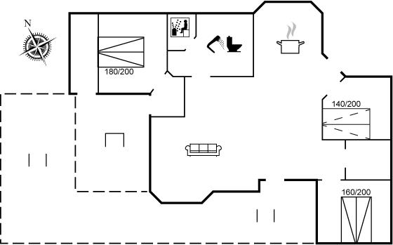 Der er i alt 3 soveværelser. Sovepladserne fordeler sig på: 4 sovepladser i dobbeltsenge. 1 soveplads i enkeltseng. 2 sovepladser i sovesofa (dobbelt). 1 af disse sovepladser befinder sig på husets hems.