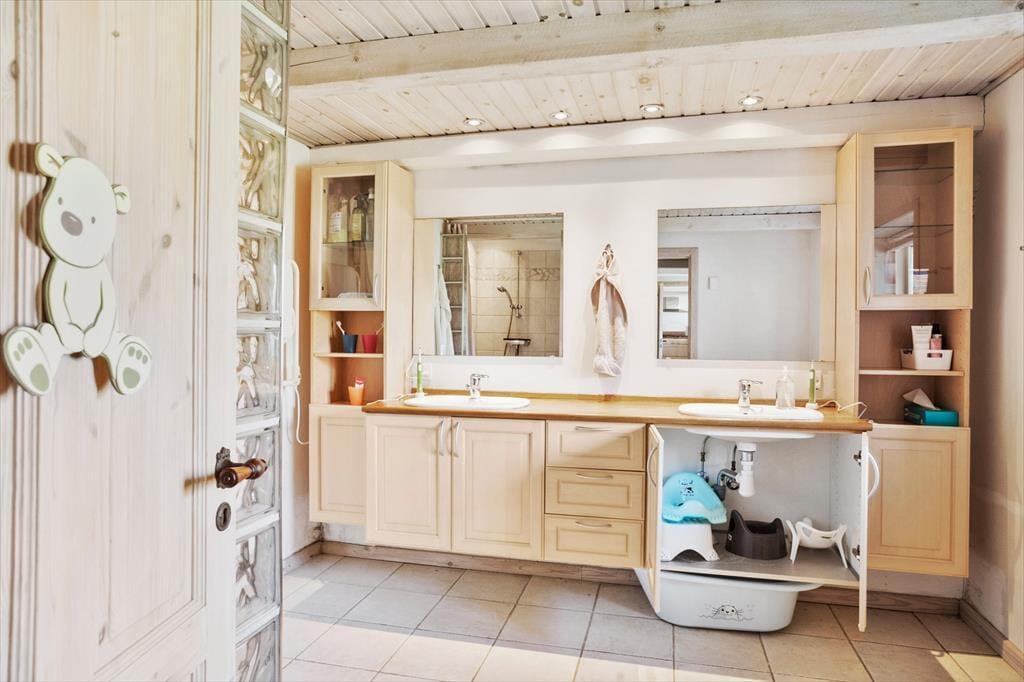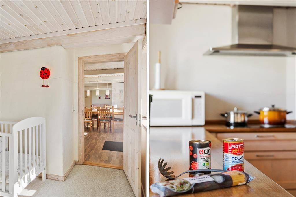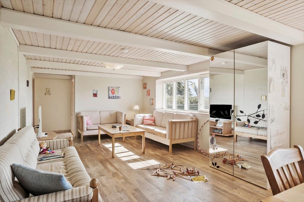 Dette sommerhus er en del af et minilandbrug med får, hunde, katte og både små og store heste. Gården er i drift, og ejeren bor selv i sidebygningen. I huset er alt indrettet på børnevenlig vis: med gulvvarme over det hele, vaskemaskine og tørretumbler, så det er nemt hele tiden at have rent og tørt tøj, og både stole og senge til de mindste, som også kan benyttes til nyfødte. Køkkenet er veludstyret, og på badeværelset er dobbeltvask og en god brusekabine. På de tre værelser er hhv. en dobbeltseng, to enkeltsenge og en køjeseng. Bemærk, at der på værelserne er opstillet kommoder til opbevaring af tøj, mens der er mulighed for at hænge skjorter osv. på bøjle i skabene i stuen. I stuen er der mulighed for at spille bordfodbold..