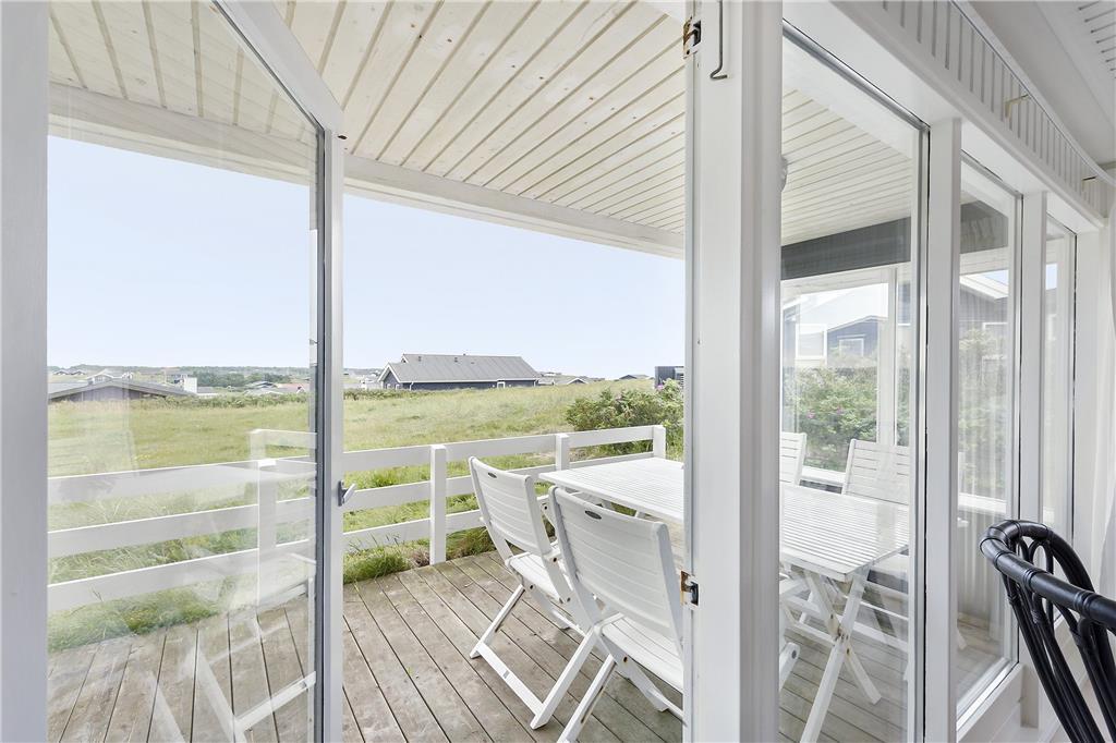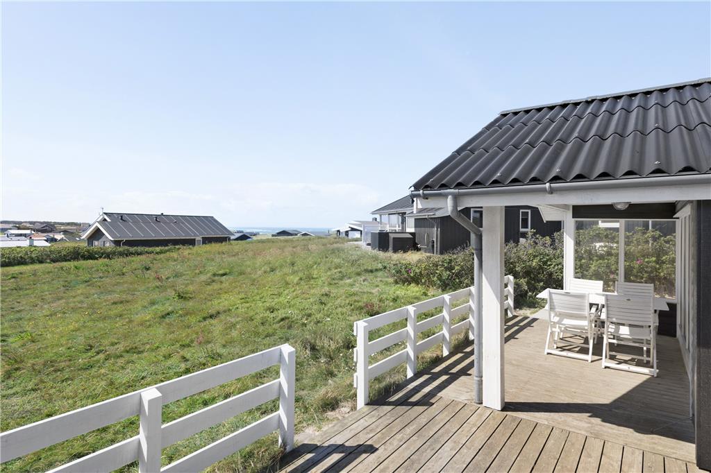 Huset er beliggende på en pragtfuld klitgrund kun ca. 100 meter fra stranden og med en forrygende udsigt over området og havet. Terrassen snor sig om hele husets vestlige side og der er gode muligheder for at nyde sommerens sol og varme samt de fantastiske omgivelser og natur. Den overdækkede terrasse er afskærmet mod vest og dermed perfekt til grillhygge med familien på de lune sommeraftener med havets brusen i baggrunden. Her er naturligvis også havemøbler, liggestole og grill til rådighed.