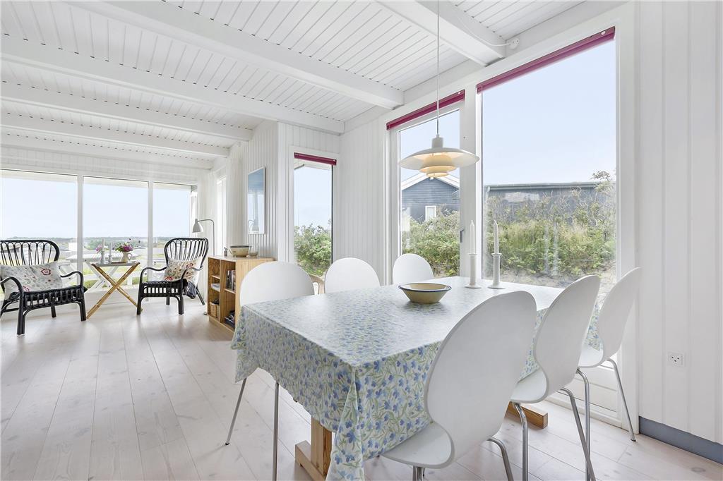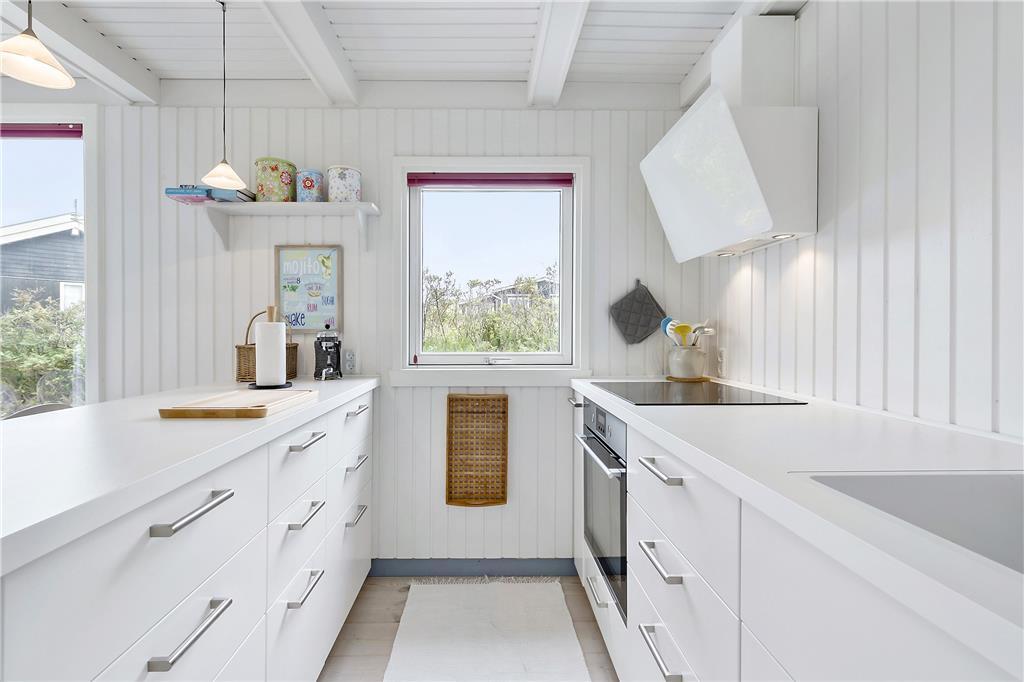 Hjertet af det 68 m2 charmerende hus, er det åbne køkken-alrum; Her kan hyggen hurtigt sprede sig, enten ved hjælp af brændeovnen på en regnvejrsdag, eller fra de store vinduespartier som virkelig lukker det fantastiske nordjyske lys ind og skaber en skøn stemning. Køkkenet er moderne med gode hårde-hvidevarer og overalt er her lyst og venligt. Fra stuen er der to udgange til de gode terrassearealer, hvorfra udsigten er fantastisk. Der er mulighed for både at benytte sig af en dobbeltseng, enkeltsenge eller en køjeseng, som de tre værelser tilbyder og huset er derfor godt egnet til både familier og par som ønsker at tilbringe noget kvalitetstid sammen.