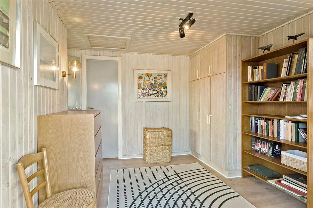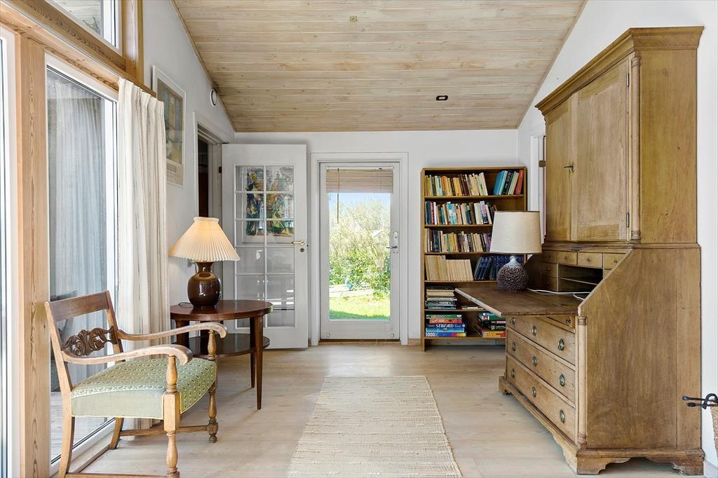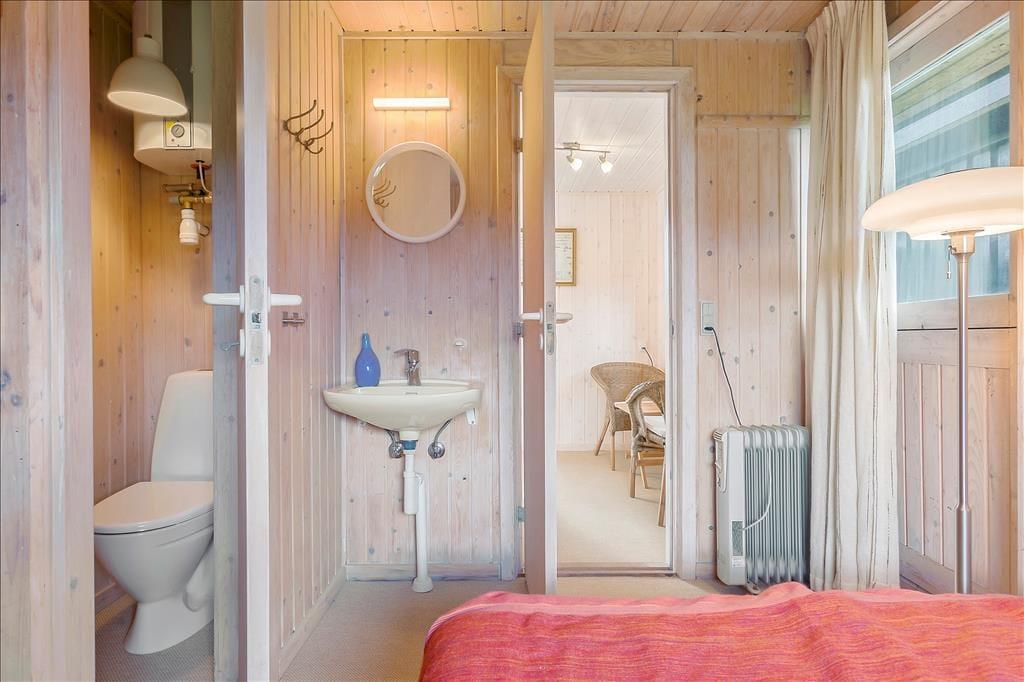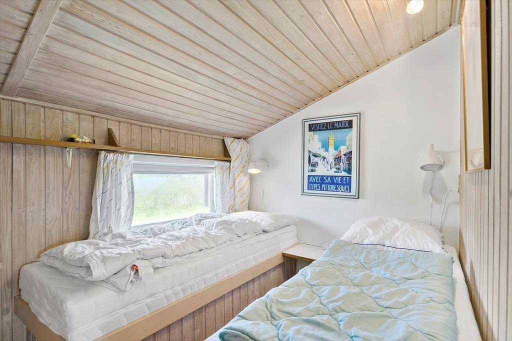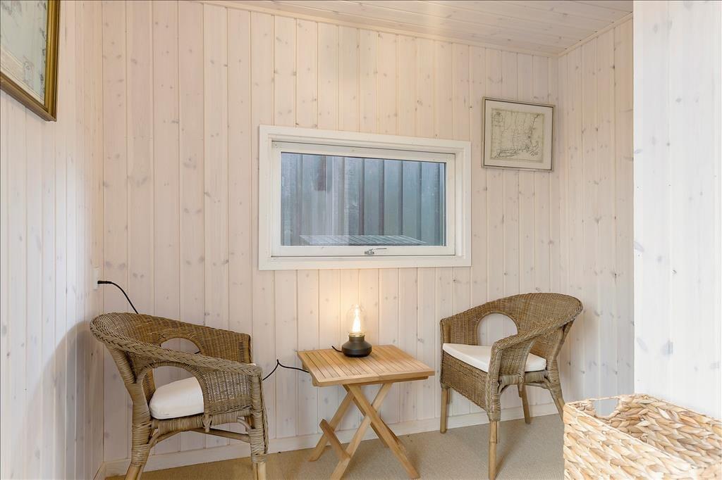 Dette 119m² store sommerhus indeholder to stuer; et køkken-alrum i den ældre del af huset, hvor der både er plads til at spise og slappe af, samt en dagligstue i den nye del med behagelige møbler, en god udsigt og plads til hygge og samvær. Begge stuer indeholder brændeovn og er indrettet i en hyggelig gammel stil. Sommerhuset er op til 7 personer. I huset er der tre soveværelser til rådighed: ét soveværelse med en dobbeltseng og to meget små værelser – det ene med en enkeltseng og det andet med to enkeltsenge. Disse to værelser egner sig bedst til børn. Badeværelset er flot og nyrenoveret og indeholder en rummelig bruseniche og vaskemaskine. I annekset, ved siden af garagen, er der også et værelse med en dobbeltseng og med separat bruseniche og toilet.