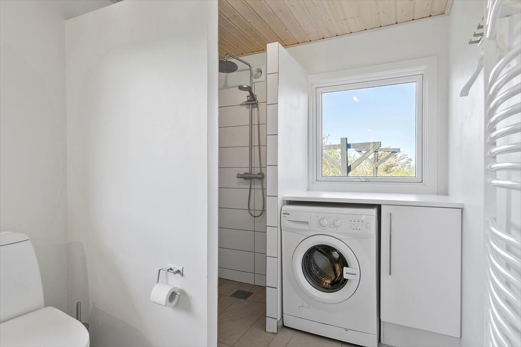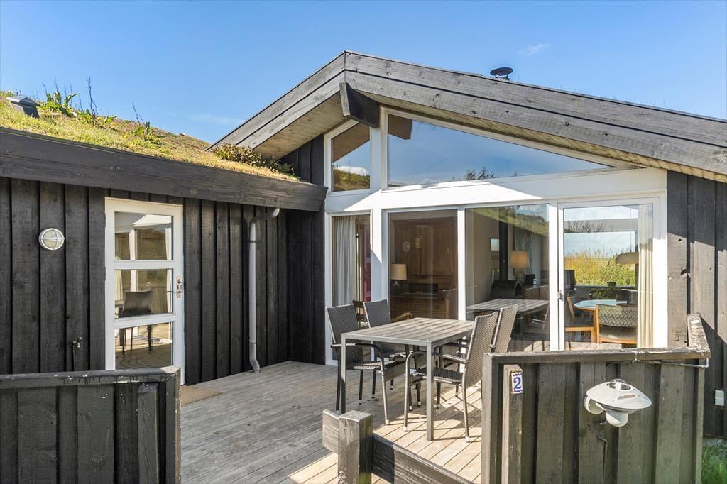 Sommerhuset ligger på en dejlig grund med en fin udsigt til vandet. Der er udgang til en terrasse fra både køkken-alrummet og dagligstuen, hvilket giver mulighed for at følge solen rundt hele dagen. Der er naturligvis grill, havemøbler og liggestole til rådighed.