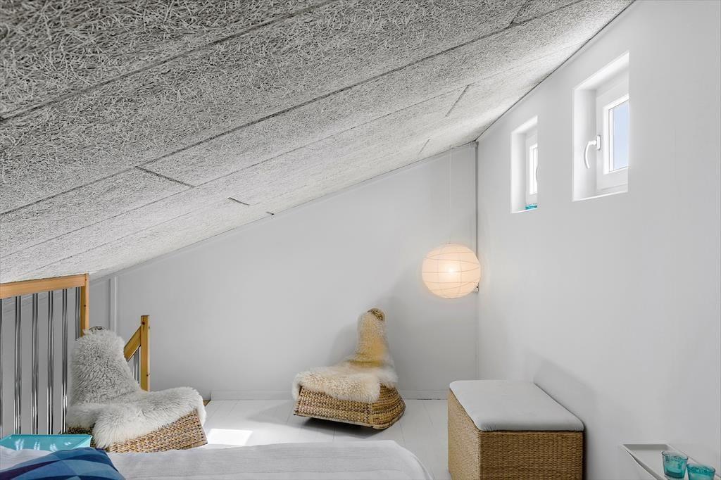 Lejligheden er i to plan og er placeret på øverste etage i Lyngby Mølle Feriecenter med direkte havudsigt fra balkonen til Vesterhavet ved Nr. Lyngby. Lejligheden er yderst velholdt og smagfuldt indrettet, køkken er moderne og nyt, så man kan holde en dejlig afslappende ferie. Her er plads til fire overnattende personer, bemærk at 2 af sovepladserne findes på en rummelig hems på1.salen med alm. trappe op. På feriecentret kan man uden betaling vaske og tørre tøj i fælleshuset, og man har gratis og trådløst internet til rådighed, så det er nemt at orientere sig om egnens mange muligheder.