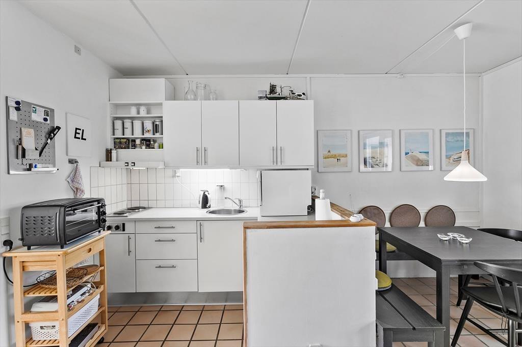 Lejligheden, som ligger i stueplan, er perfekt indrettet til to personer, da lejligheden byder på et soveværelse med dobbeltseng, et badeværelse med brusefaciliteter og en dejlig stue med integreret køkkenafdeling. Hvis man bliver flere personer kan sovesofaen i stuerummet slåes ud. Alle rum fremstår velholdte og indbydende, og takket være den åbne indretning og den enkle farvesætning er atmosfæren lys og let. Uanset hvad I bruger dagene på, har I en perfekt ramme til at komme helt ned i afslappet ferietempo: Måske hygger I om madlavningen og fremtryller lækkerier i det funktionelt indrettede køkken – eller måske vil I hellere vil slappe af i sofaen med et yndlingsprogram i TV, en god bog og krydsogtværser på mere tilbagelænet vis. Vaskemaskine og tørretumbler kan i fællesrummet benyttes gratis (åben fra påske til efterårsferien).