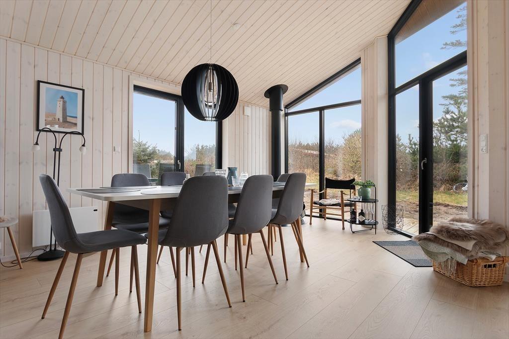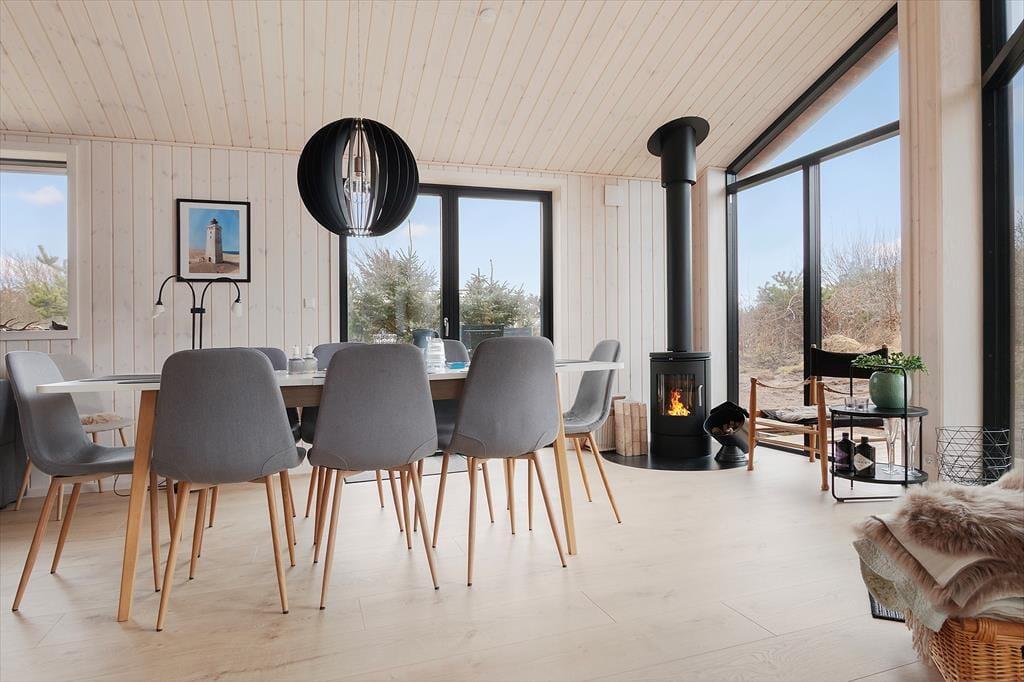 Sommerhusets beliggenhed i naturskønne Nr. Lyngby gør det let at nyde det gode udeliv. Med de skønne terrasseafdelinger kan du altid finde en solrig plet til morgenkaffen eller et hyggeligt sted i skyggen til en eftermiddagslur. Terrasserne indbyder til lange grillaftener under åben himmel, hvor du kan nyde den friske luft og lytte til naturens lyde. Da huset ligger for enden af en blind stikvej, kan du roligt slappe af uden forstyrrelser fra trafik, og de omkringliggende naturskønne omgivelser giver mulighed for at spotte dyrelivet, tage en cykeltur eller gå på opdagelse i det smukke klitlandskab.