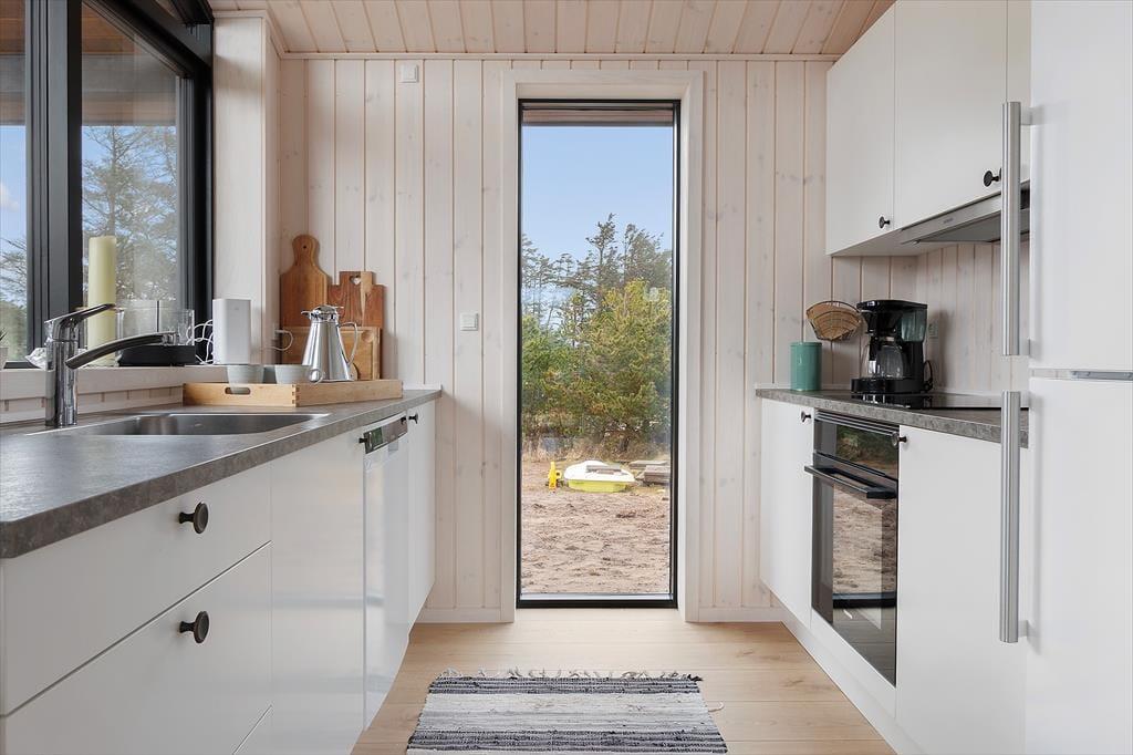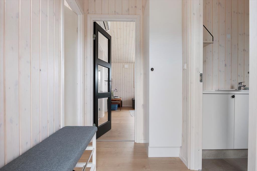 Sommerhuset byder dig velkommen med en lys og hyggelig indretning, der skaber den perfekte ramme for afslappede feriedage. Huset er indrettet med tre rummelige værelser, en alkove og en hems, der giver ekstra plads til børnene eller en hyggelig læsekrog. I hjertet af sommerhuset finder du et moderne køkken, der gør det nemt at trylle lækre feriemåltider frem, mens den åbne forbindelse til stuen skaber en dejlig fornemmelse af samhørighed. Stuen er udstyret med en brændeovn, der tilfører varme og hygge på de køligere dage, og herfra er der direkte udgang til de skønne terrasser, hvor du kan lade naturen komme helt tæt på. Sommerhuset har desuden et skønt badeværelse samt en praktisk entré, hvor du kan hænge overtøjet efter en lang dag ude i det fri.