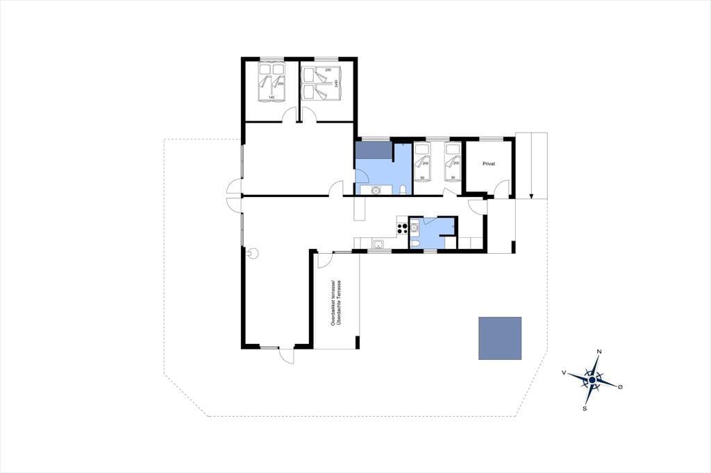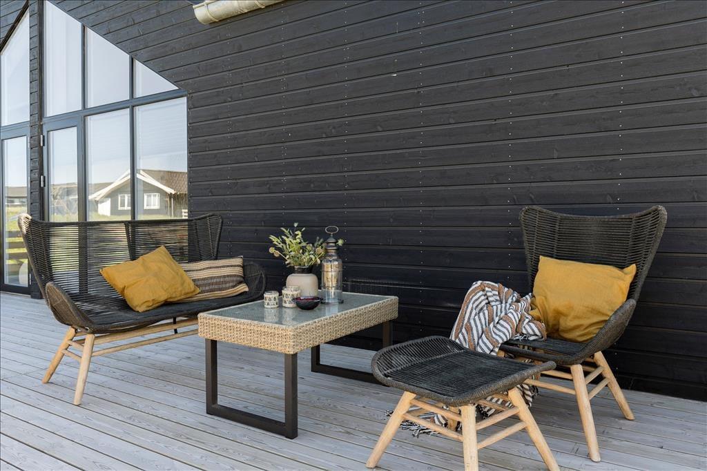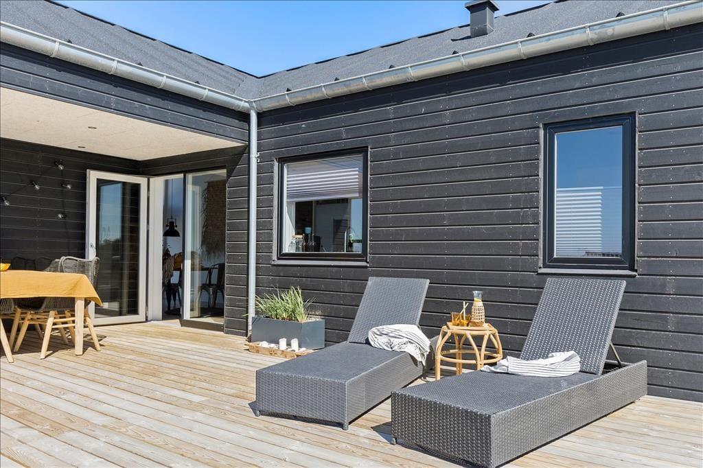 Sommerhusets helt store attraktion er uden tvivl den store træterrasse, der giver jer et skønt udendørs opholdsrum med fremragende udsigt over havet. Udsigten bliver ekstra god af, at huset ligger højt i landskabet, så I kan se ud over hele sommerhusområdet ned mod Nr. Lyngby. Terrassen har udespa, og der er god plads til at slappe af på solsenge eller dække op til en hyggelig frokost og bare nyde de smukke omgivelser. Da terrassen følger facaden rundt langs huset, kan I altid finde en krog med sol eller læ.