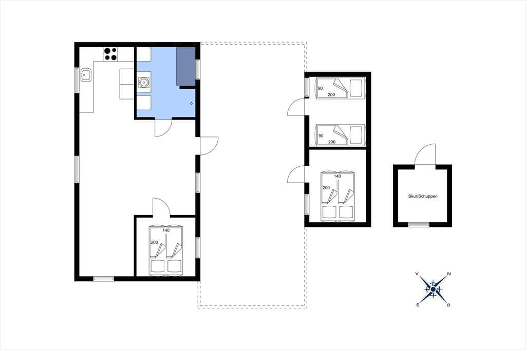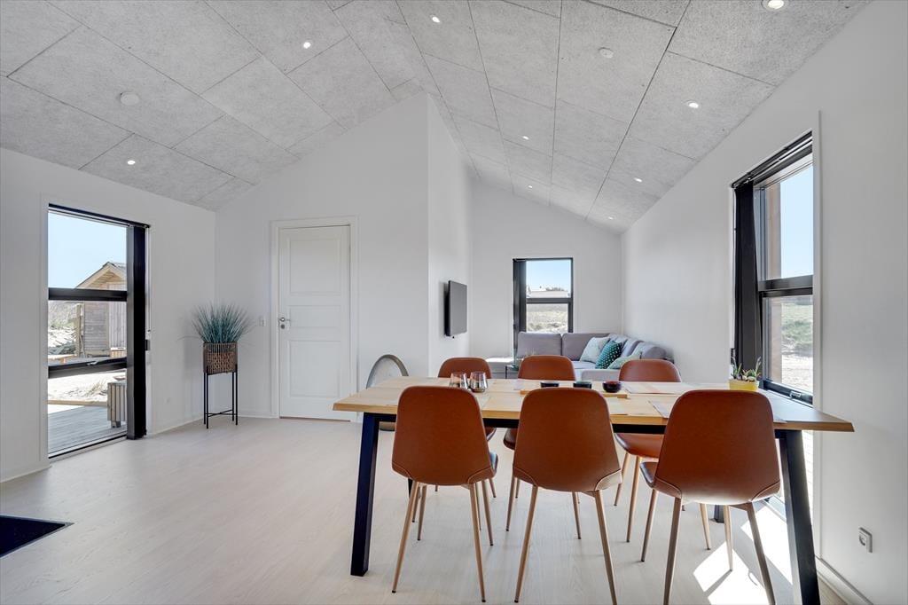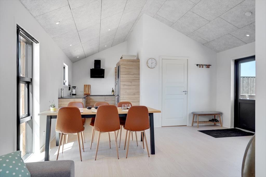 Efter en omfattende renovering i 2020 har sommerhuset fået sin flotte fremtoning med lys træfacade og en stilren indretning med velvalgte detaljer. Et lækkert køkken er integreret med stuen, der byder på spisebord og en hyggelig sofakrog med fladskærms-tv. På badeværelset er der ikke bare plads til en vaskesøjle og en bruseniche, men også et badekar, så I kan afslutte feriedagene med wellness og afslapning. Sommerhusets planløsning byder også på et soveværelse med dobbeltseng, og hvis I har brug for flere sengepladser, er der to ekstra værelser i annekset – det ene er med dobbeltseng og det andet med to enkeltsenge.