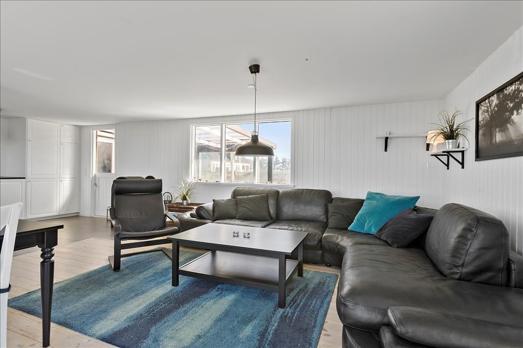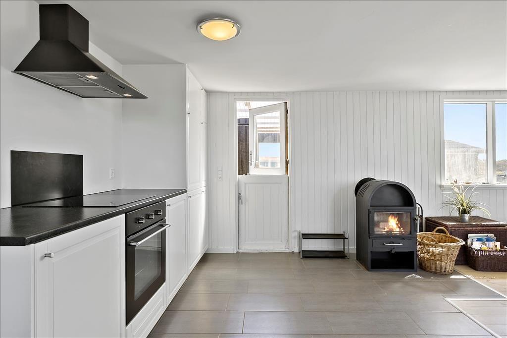 Sommerhuset er et pænt og velholdt eksemplar, der er blevet renoveret i 2017 og indrettet med enkelt møblement i neddæmpede farvetoner. Inden døre er der 68 m2 at brede sig på for op til fire personer: I løbet af dagen kan I opholde jer i stuen, der ligger i åben forbindelse med et veludstyret køkken, og nattesøvnen kan foregå på de to soveværelser, der begge er udstyret med gode dobbeltsenge. På sommerhusets badeværelse er der gulvvarme, mens en brændeovn står klar til at sprede varme og hyggestemning i stuen. I stuen er der for øvrigt vinduer vendt mod tre verdenshjørner, så der er ikke bare fri havudsigt, men også et godt lysindfald hele dagen lang.