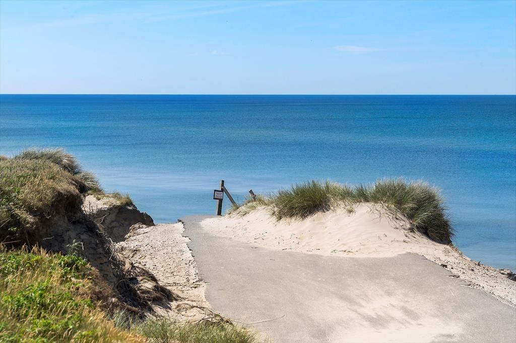 Fra sommerhuset er der bare 35 meter hen til klinten, og dermed bor I blot få skridt fra et helt fantastisk udsigtspunkt, når I vil skue ud over Vesterhavet og Nr. Lyngbys smukke strand. Vil I ned på stranden, fører en trappe ned ad den stejle klint, så I behøver ikke at gå en lang omvej, hvis I vil have en dukkert i havet eller lege på stranden. Der er dog også en nedkørsel til stranden, som for øvrigt ligger tæt på byens sæsonåbne købmand og pub. Selvom det er herligt bare at slappe af i den friske havluft, er der mange gode aktivitetsmuligheder, hvis I får lyst til en udflugt. Børnefamilier kan eksempelvis køre til Family Farm Fun Park eller til Action House i Løkken, og de historisk interesserede kan lægge vejen forbi Børglum Kloster – og alle bør næsten besøge Rubjerg Knude for at opleve det gamle fyrtårn, der ligger så majestætisk på vandreklitten.