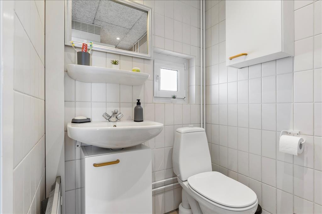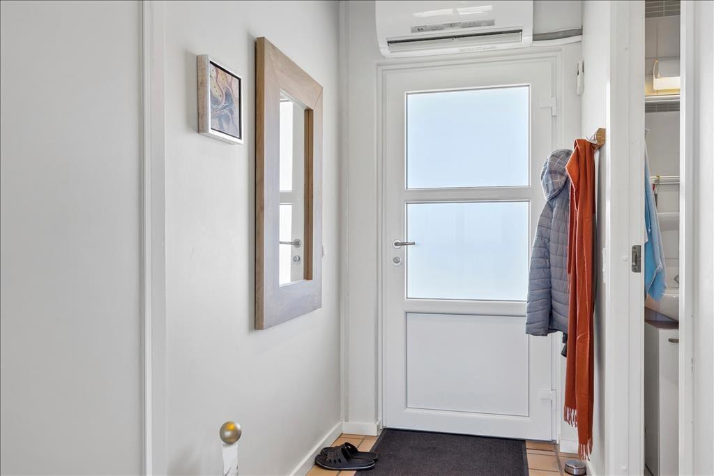 Vesterhavet er helt sikkert noget af det, der lokker mange feriegæster til Nr. Lyngby og omegn, og her i lejligheden behøver I slet ikke bevæge jer ud i det fri for at nyde synet: Selv når I står og forbereder aftensmaden i køkkenet eller hygger jer ved spisebordet, har I udsigt til vandet. I det hele taget er lejligheden behagelig at opholde sig i – blandt andet takket være møblementet, der er både pænt og komfortabelt. Opholdsrummet, hvor køkken og stue er forenet, er lejlighedens største rum, og planløsningen byder derudover på et funktionelt badeværelse og et godt soveværelse med dobbeltseng. En trappe fører op til en rummelig hems, som er udstyret med både en enkeltseng og en dobbeltseng, så i alt er der plads til fem feriegæster i lejligheden.