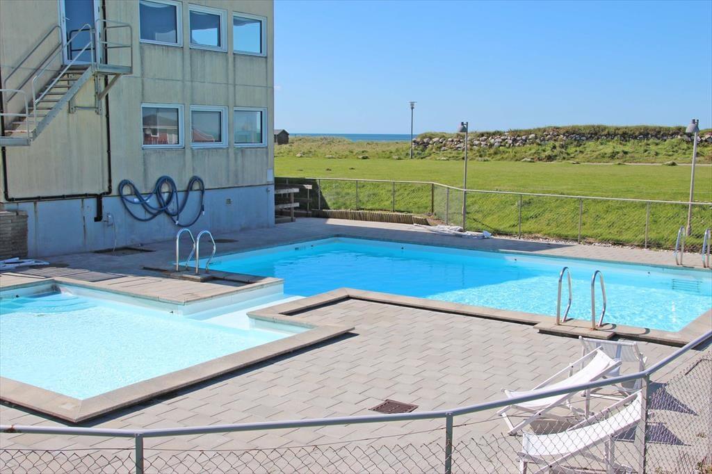 Fra opholdsrummet har I direkte adgang til en afskærmet altan, der ligger i vestlig retning ud mod havet. Det er en skøn opholdsplads, ikke mindst ved aftentid, når solnedgangen laver et spektakulært farveshow ude i horisonten. Lejligheden ligger som del af Lyngby Mølle Feriecenter, og derfor har I adgang til flere gode fællesfaciliteter, der blandt andet inkluderer en sjov legeplads og et udendørs poolområde med en dyb swimmingpool og et lavere børnebassin.
