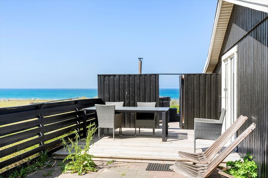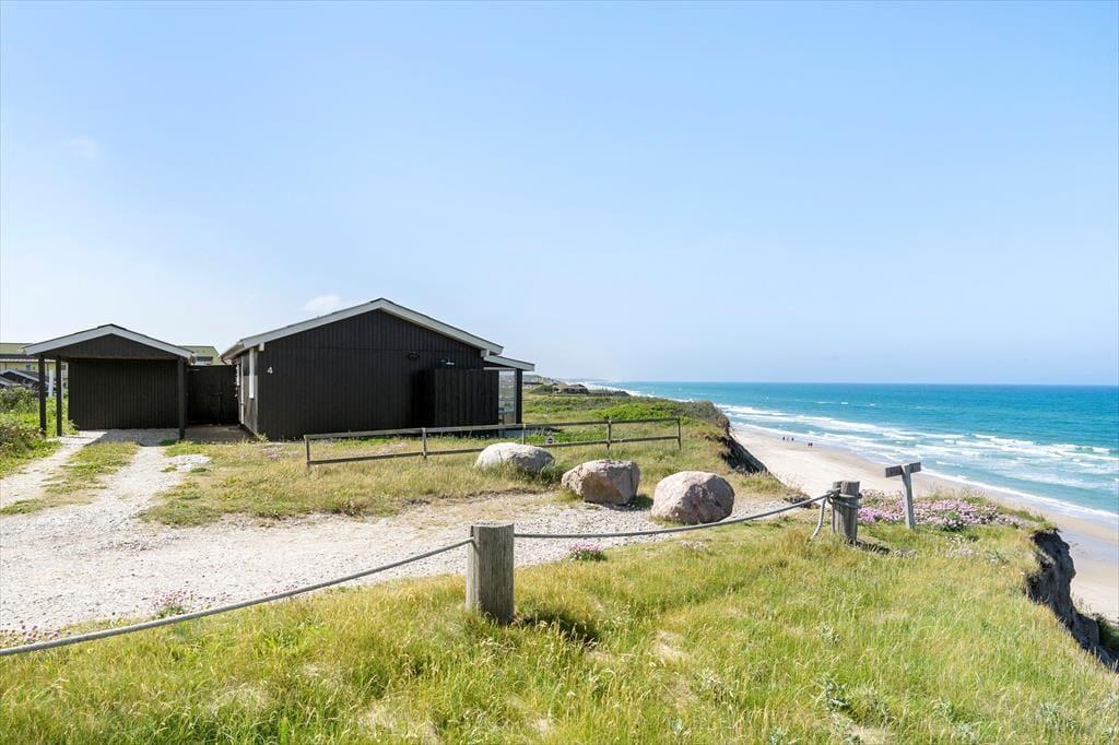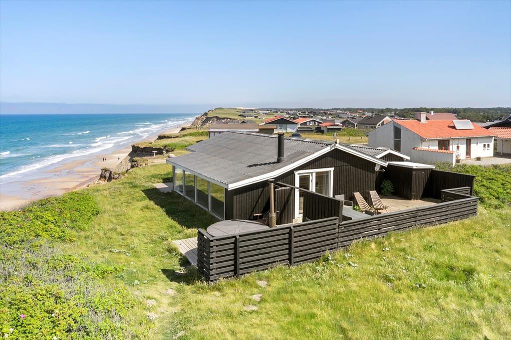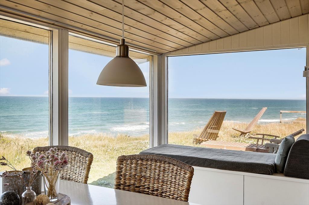 Hvis I er på udkig efter et sommerhus med en spektakulær beliggenhed, er der ingen grund til at lede mere. Dette sommerhus i Nr. Lyngby ligger lige ud til Lønstrup Klint, så fra stuen, terrassen og selv fra vildmarksbadet har I den mest fantastiske panoramaudsigt over Vesterhavet.