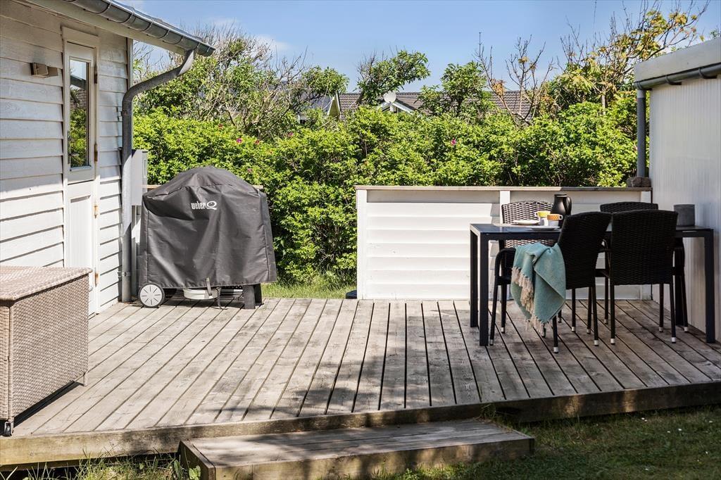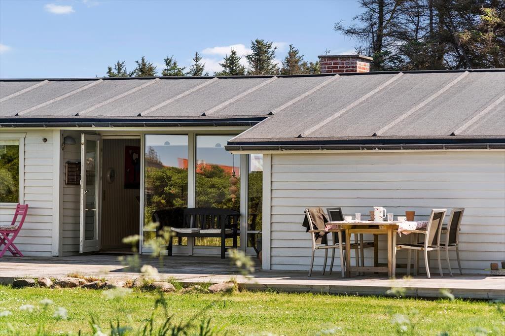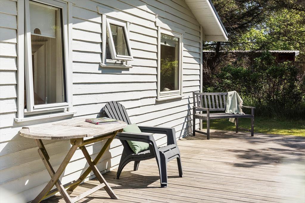 Til huset er der tre store og gode terrasseafdelinger. Terrassen mod vest giver jeg mulighed for at nyde en hyggelig grillaften. Den sydvendte terrasse vender ud mod søen, hvor I kan kaste et blik på vandet både i form af søen og havet. Den På den østvendte terrasse kan I sidde og nyde morgenkassen i solen og ligeledes sidde i læ. Græsplænen er stor og rummelig, så der er plads til spil og leg i haven.