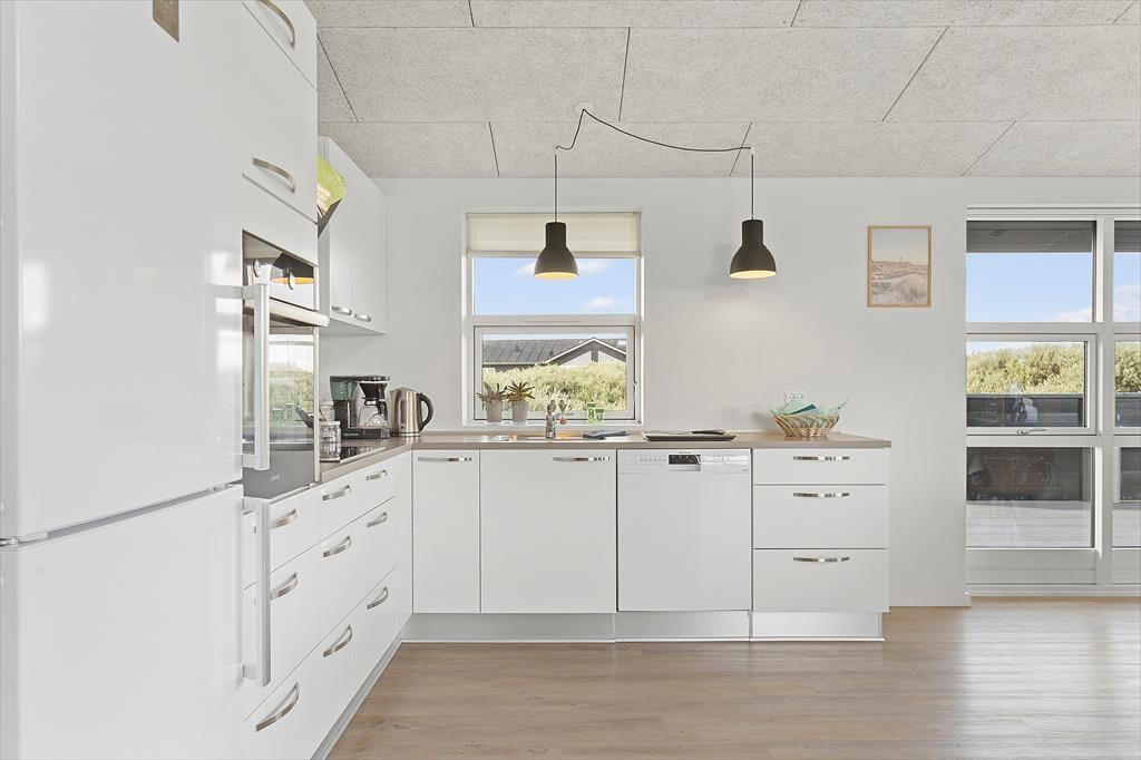 Sommerhuset ligger helt idyllisk for enden af den lukkede Helledievej og lige op ad et grønt fællesområde, der fører ned til Nr. Lyngby Søerne og den lokale shelterplads. Gåturen til Nr. Lyngbys smukke strand og den storslåede kyststrækning kan anbefales i stort set al slags vejr, for det er herligt at stå og kigge ud over Vesterhavet, uanset om sommersolen slår smut på det stille vand, eller om bølgerne viser tænder. Børnefamilier kan oplagt besøge Family Farm Fun Park i løbet af ferien, og naturelskere skal helt klart tage nordpå for at opleve Rubjerg Knude. Og hvis I vil tilbringe en hyggelig eftermiddag eller to i Løkkens stemningsfulde gader, kan I være fremme ved den populære kystby på få minutter.