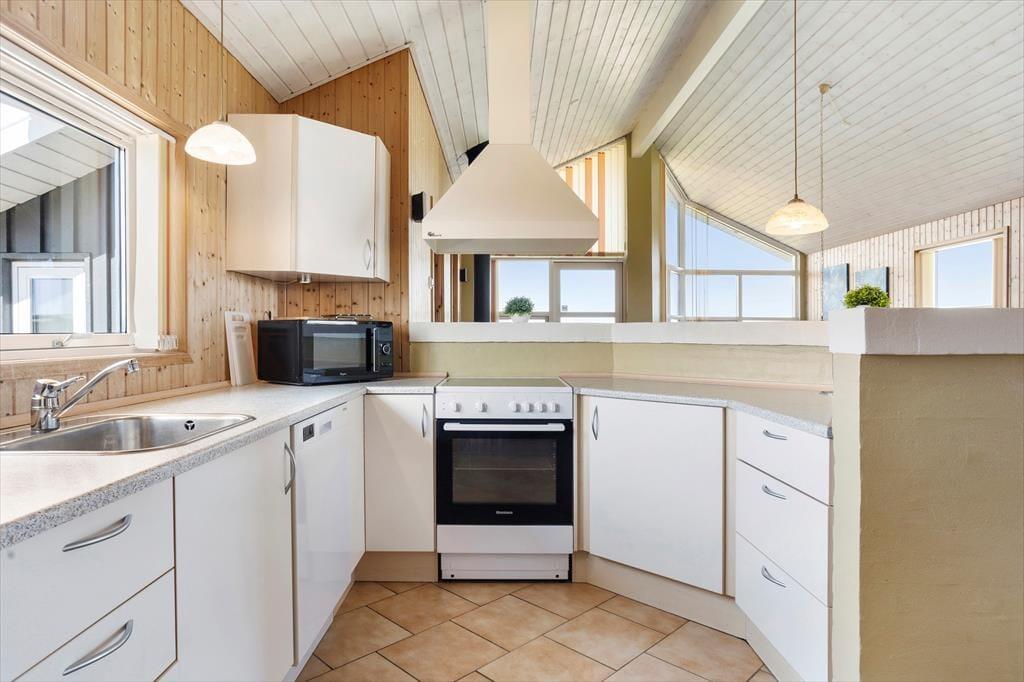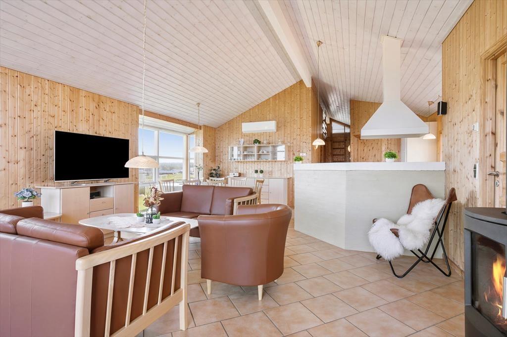 Når du træder indenfor i dette lyse og rummelige sommerhus, mødes du af en hyggelig atmosfære og en gennemtænkt planløsning. Sommerhuset byder på tre gode soveværelser og to badeværelser, hvoraf det ene er udstyret med både spabad og sauna – perfekt til afslapning efter en dag ved havet. Stuen er indrettet med store vinduer, der sørger for et dejligt lysindfald, og på kølige aftener kan du tænde op i brændeovnen og nyde hyggen sammen med familien. Fra stuen er der adgang til en hems, som giver ekstra sovepladser og mulighed for, at børnene kan have deres egen lille hule. Køkkenet er moderne og veludstyret, så du nemt kan tilberede lækre måltider med lokale råvarer, mens du stadig er en del af fællesskabet i det åbne opholdsrum.