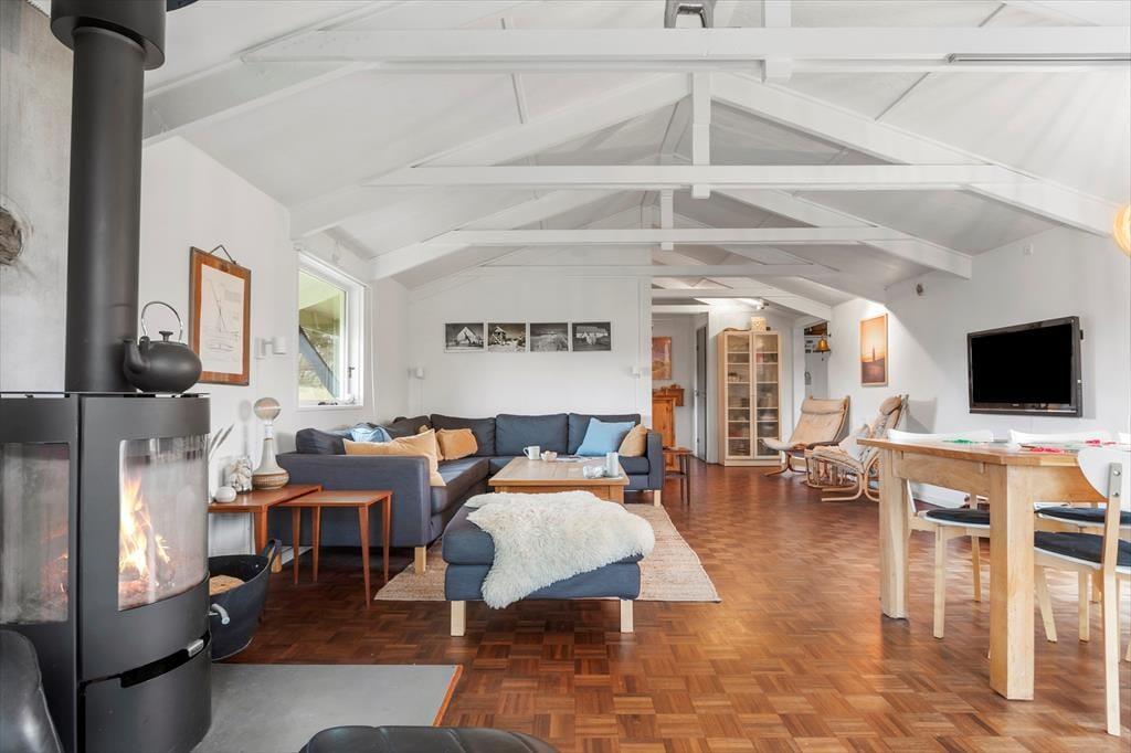 Sommerhuset byder på en lys og indbydende atmosfære med en rummelig stue, hvor hele familien kan samles. De store vinduer sikrer et fantastisk lysindfald, så du kan nyde solen hele dagen. Stuen er møbleret med komfortable møbler og giver plads til både afslapning og hyggelige stunder. I det lækre, åbne køkken kan du tilberede måltider med de bedste lokale råvarer, mens du stadig er en del af samtalerne i stuen. Sommerhuset har tre gode soveværelser, der giver masser af plads til hele familien. Det tilhørende badeværelse er pænt og funktionelt, og her kan du tage et afslappende bad efter en dag ude i naturen.