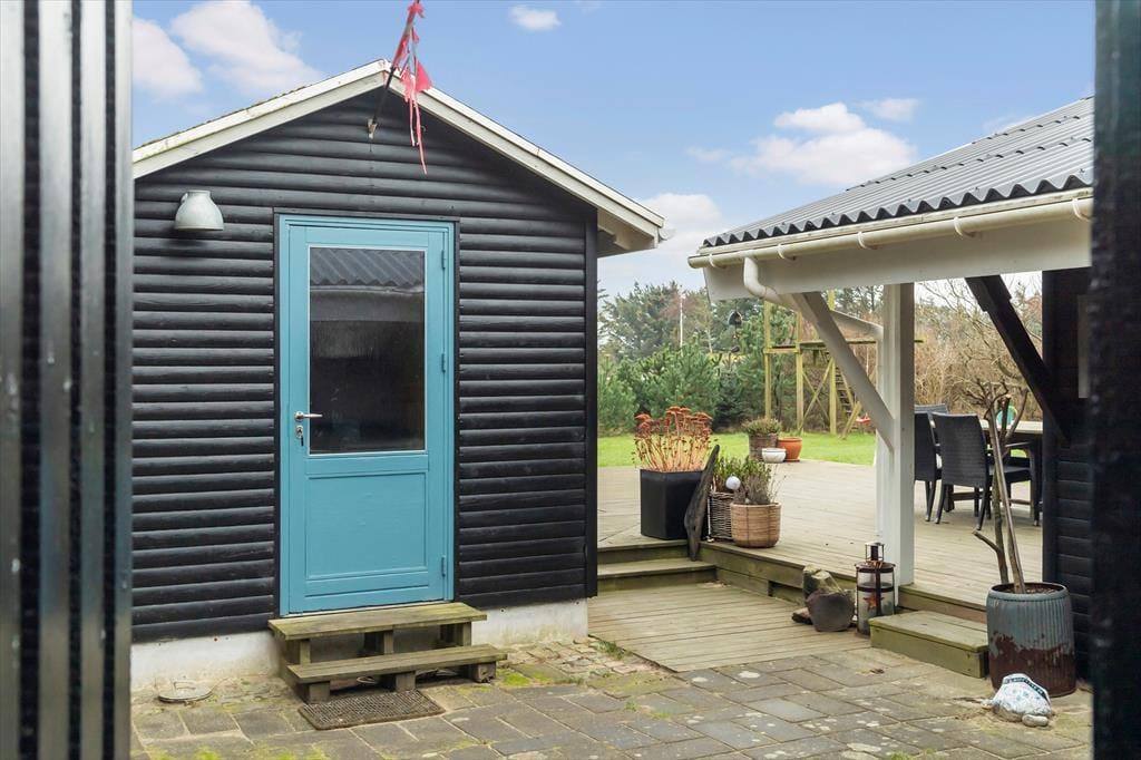 Udenfor er der flere skønne terrasser, hvor du kan nyde den friske luft og de solrige dage. Den overdækkede terrasse giver mulighed for at sidde og hygge sig, selv når vejret ikke er helt med på noterne. De store solrige terrasser er perfekte til både afslapning på en liggestol og til hyggelige måltider med familie og venner. Den private og ugenerte have giver plads til leg og afslapning, og her kan du virkelig komme ned i gear.