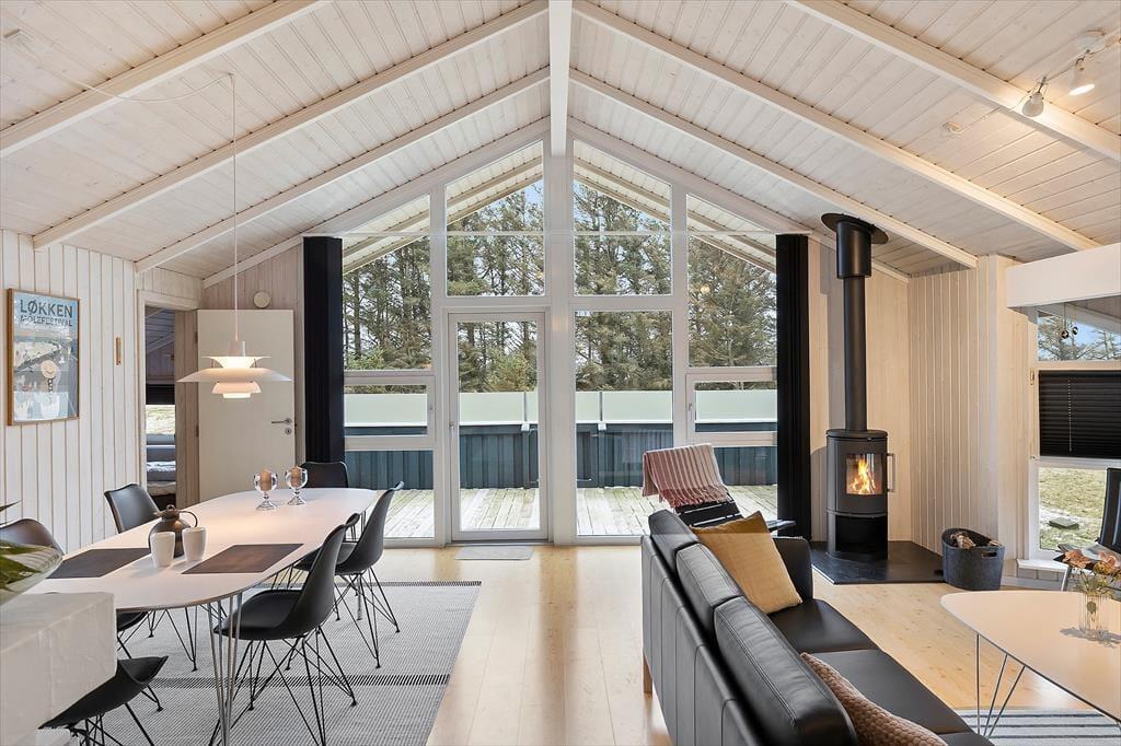 Sommerhus i Nr. Lyngby, Nordjylland, med plads til 5 voksne og 1 husdyr. Der er en hyggelig indretning med bl.a. brændeovn, og du finder desuden vaskemaskine og opvaskemaskine i boligen.